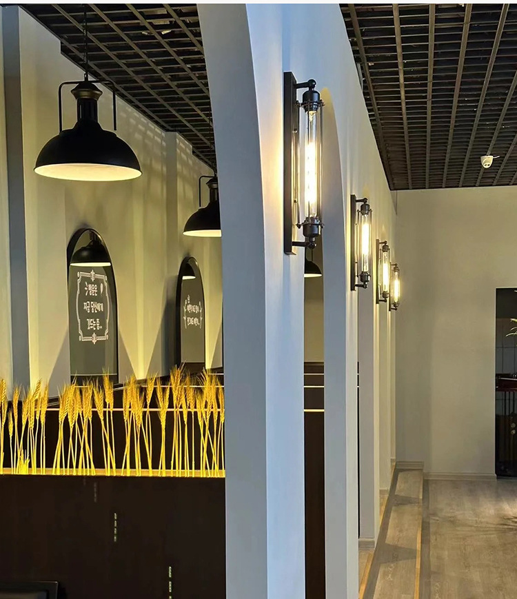 工業風創意客レストラン厨房通路廊下玄関バーベランダクロスボーダー鉄網レトロ天井照明