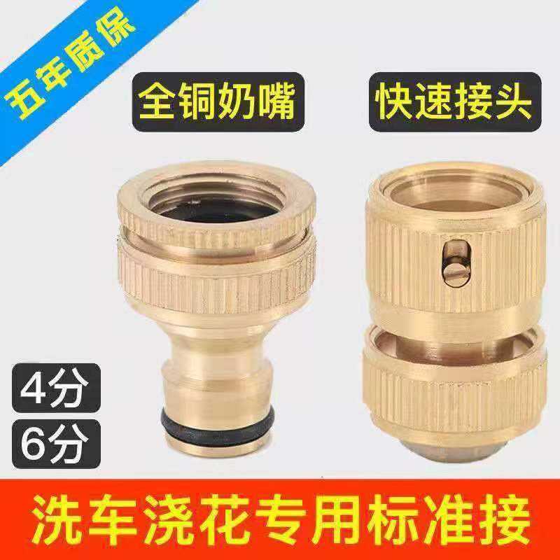 分分水龙头快接头四分六分水管全铜通水速接洗车软管铜奶嘴快