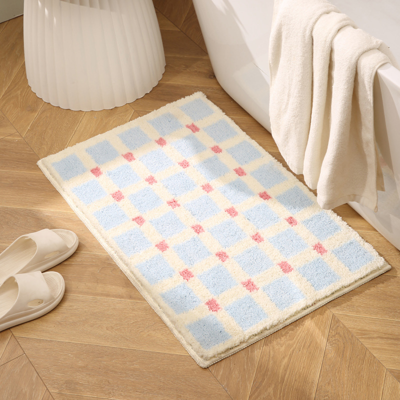メイラード中古格子バスルームフロアマット、強力な吸水性ロング滑り止めマット、バスルームフットマット、ベッドルームベッドサイドブランケット植毛