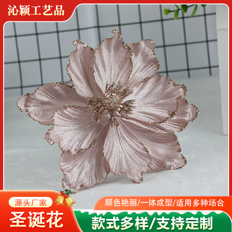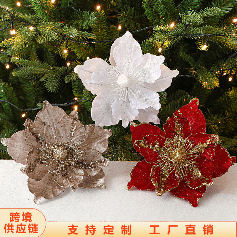 クリスマス装飾花パウダースパンコール模擬マグノリアの花クリスマス装飾クリスマスマグノリアの花クリスマス花卸売