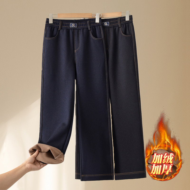冬季新款软牛仔妈妈裤加绒加厚40岁中年女裤时尚百搭松紧腰阔腿裤
