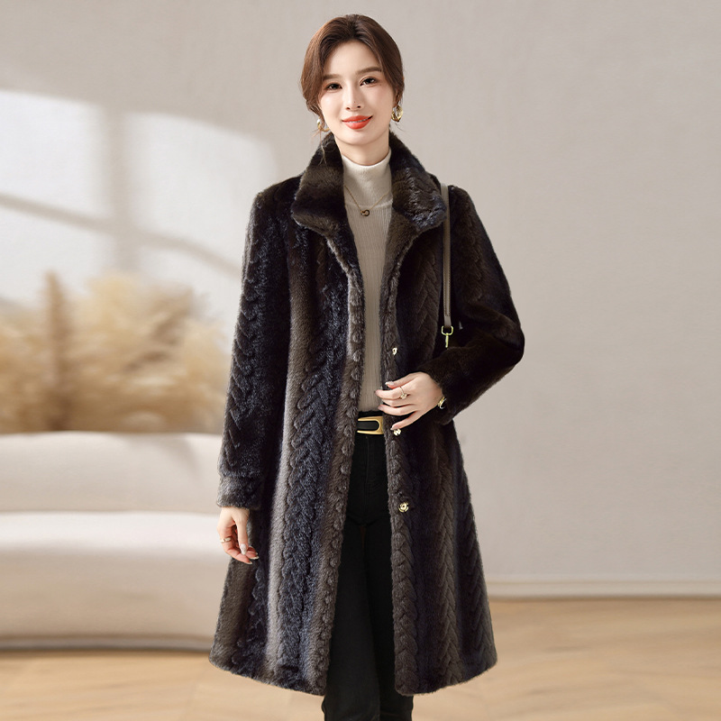 お母さんの冬服の厚い毛皮のコートの中の長いタイプの中年の婦人服の秋冬のミンクの毛皮の一体のコートの卸売り