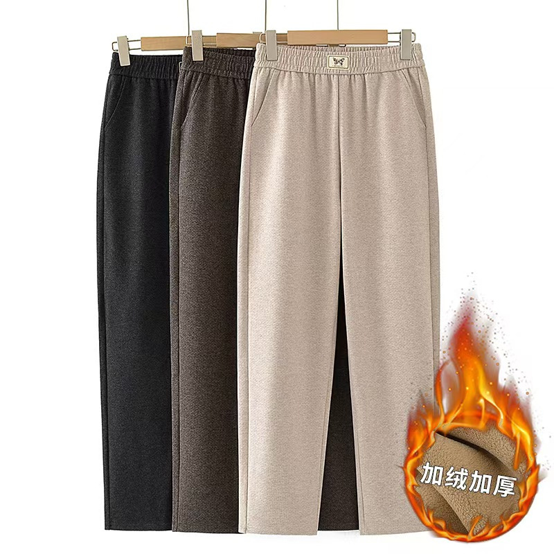 お母さん向け裏起毛ストレートパンツ 2025年冬新作 中高年女性用パンツ ゴムウエスト 万能ワイドパンツ 実店舗卸売