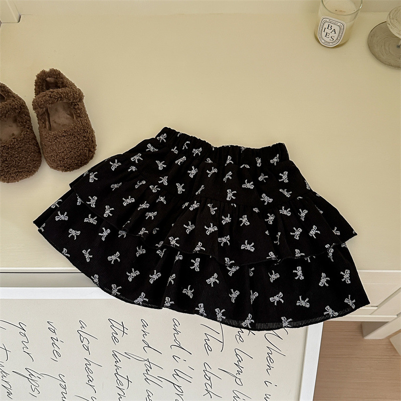 レモンの子供服の女の子のスーツのスカートの春秋2025の新型の子供の洋気の黒色のメリヤスのセーターのオーバーの半身のスカート