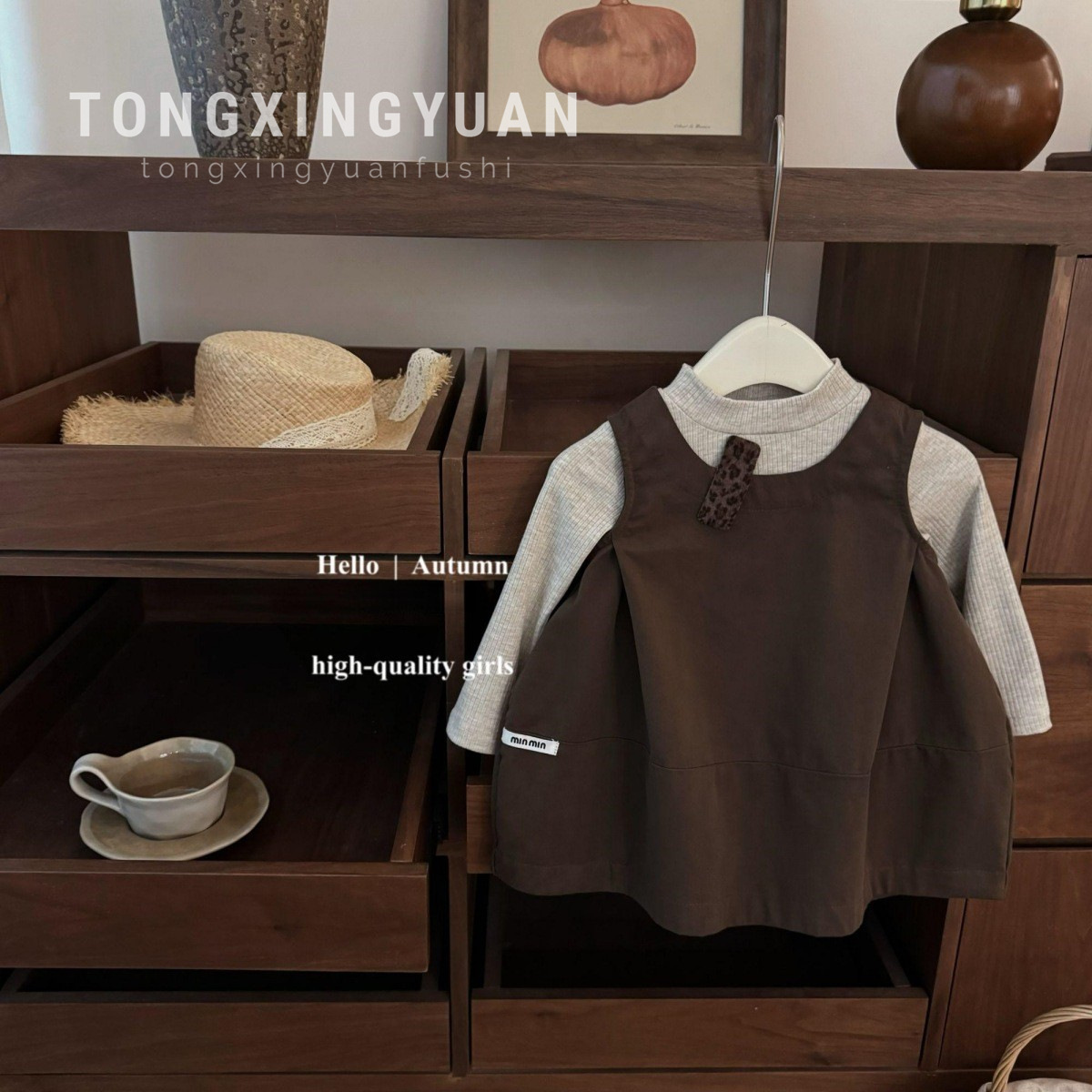 童星圆童装原创款!女宝宝韩系花苞背心裙坑条打底衫洋气套装批发