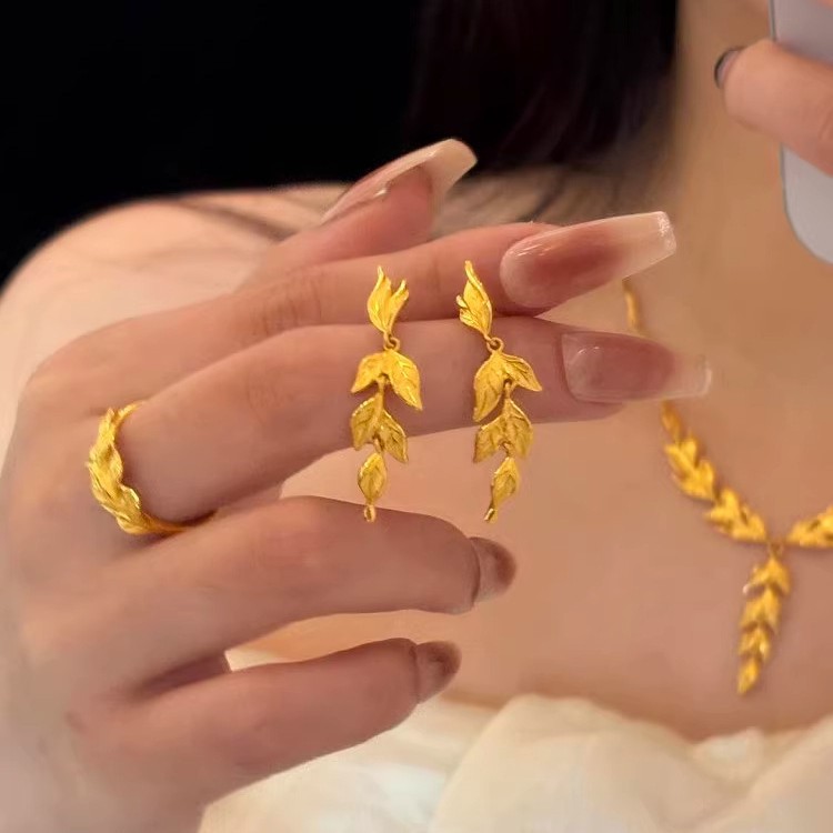 复古中式时尚个性百搭金枝玉叶耳环女精美显白高级感气质耳饰品