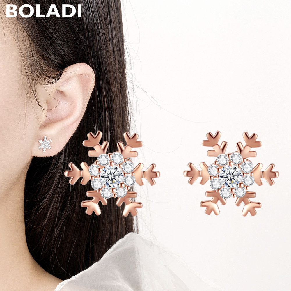 S999純銀雪花ピアス女性シンプル気質ファッションネット紅小衆高級百合新型韓国潮耳飾り
