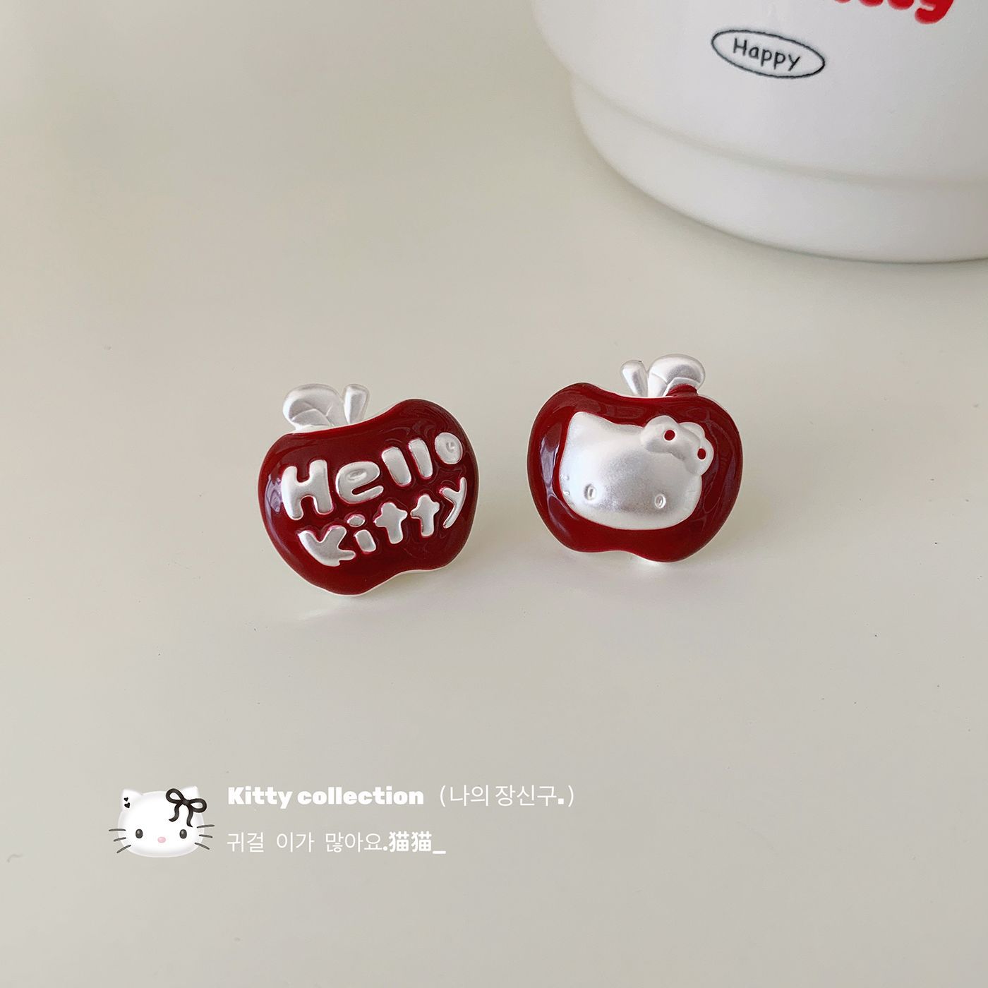 韩系甜美滴油红色苹果KT猫耳钉女银针精致可爱气质少女心百搭耳饰