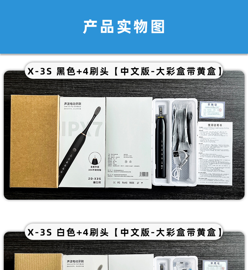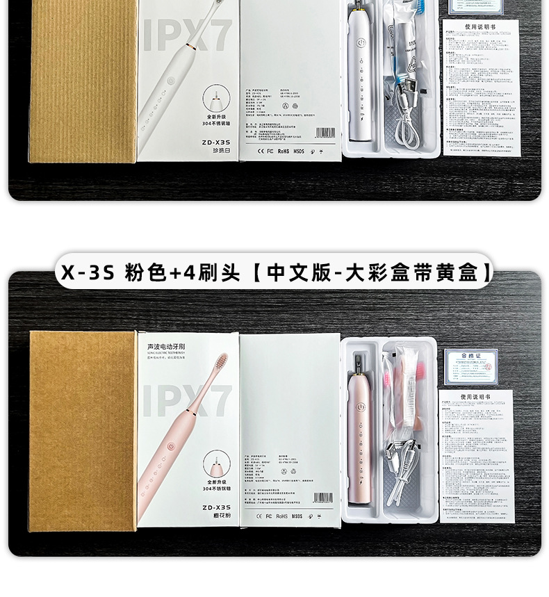 X-3S ブラック + 4 ブラシヘッド [中国語版 - 黄色のボックス付きの大きなカラーボックス],X-3S ホワイト + 4 ブラシヘッド [中国語版 - 黄色のボックス付きの大きなカラーボックス],X-3S ピンク + 4 ブラシヘッド [中国語版 - 黄色のボックス付き大きなカラーボックス]