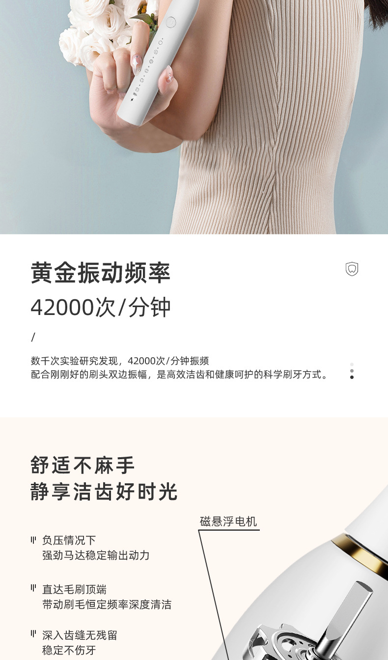 アマゾン越境電動歯ブラシ、丸型ヘッド、回転式、全自動、音波、柔らかい毛、防水、磁気浮上、5段階調整