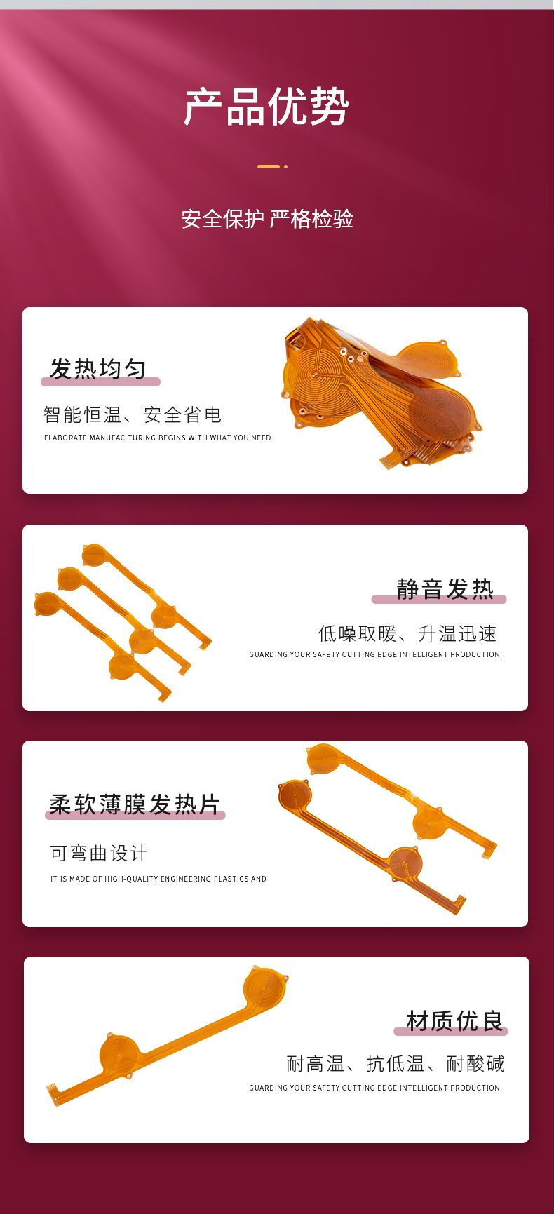 PIフレキシブルヘアアイロン用電熱フィルム、急速加熱フィルム、高温耐性加熱フィルム、ホットメルトグルーガン用加熱フィルム