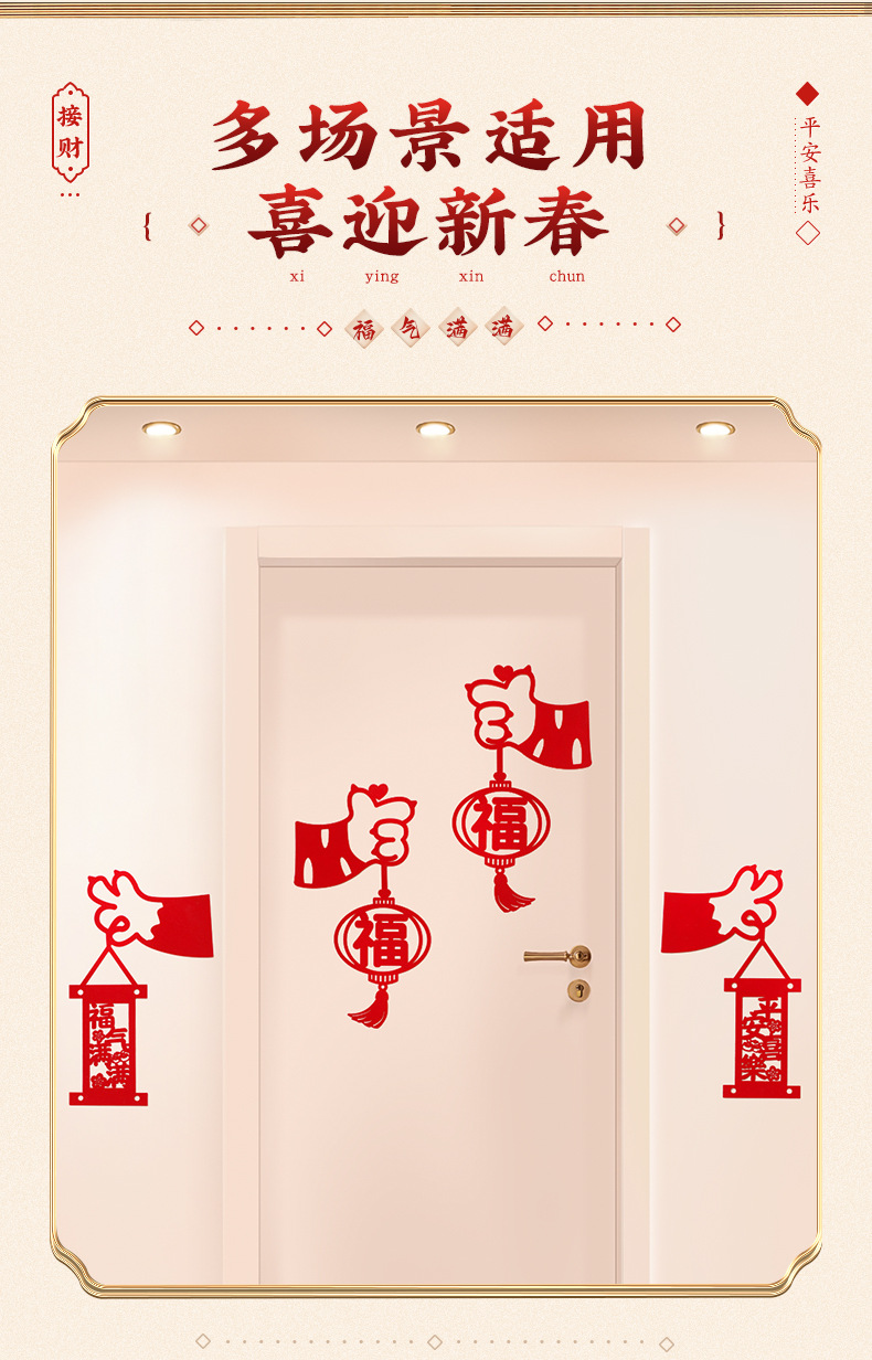 福字门贴2026马年新款大号墙贴春节窗贴客厅玄关场景布置新年装饰
