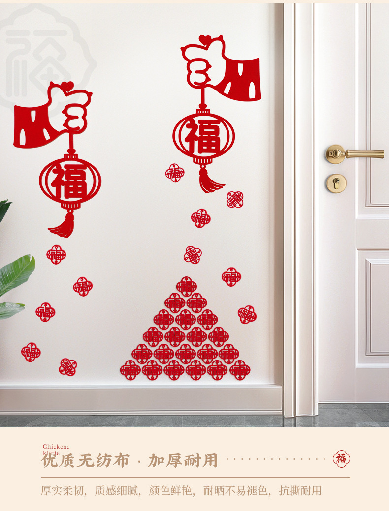 2026新年福字毛毡马年生肖墙贴春节家用商铺门贴过年装饰用品批发