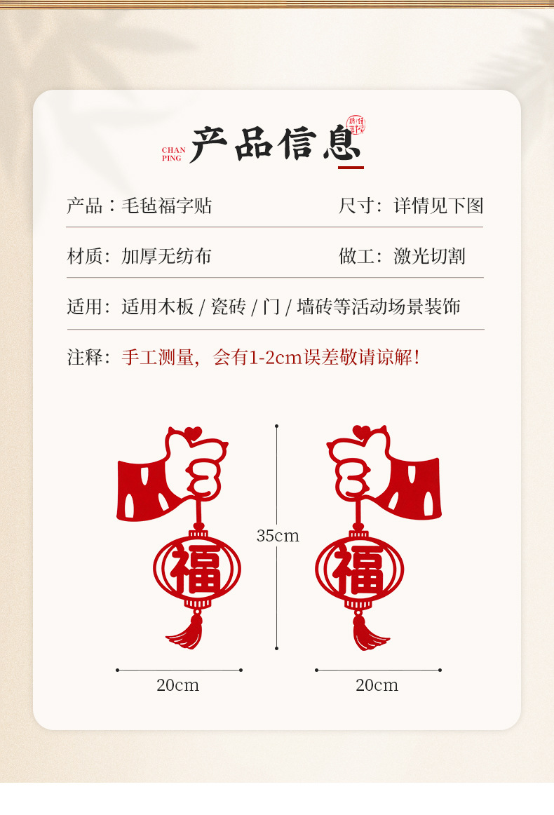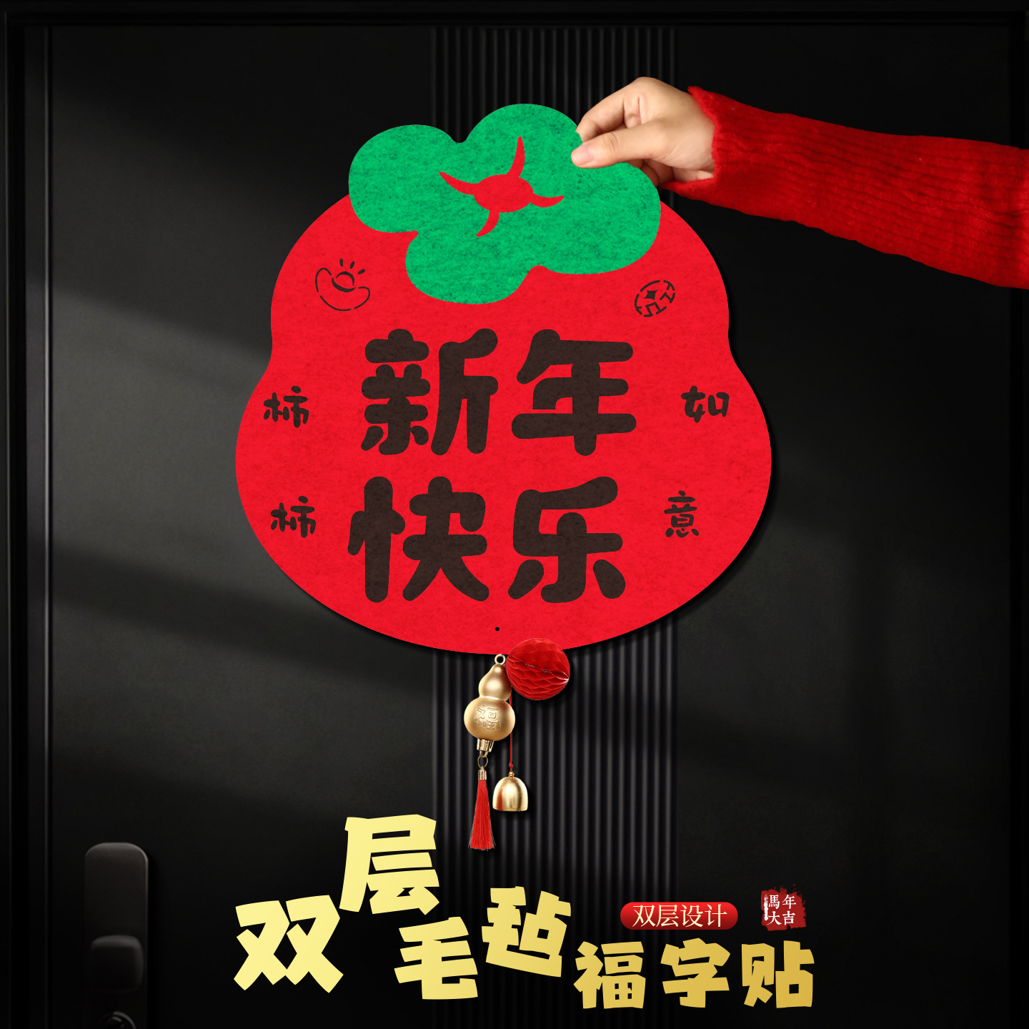 新年双层毛毡福字帖创意门贴新居布置搬家2026新年马年大门装饰