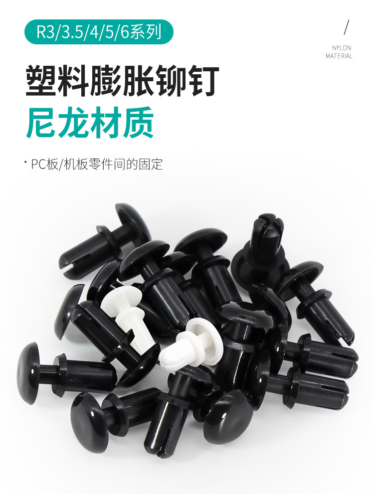 プラスチックリベットr3ナイロン膨張リベット白色子母リベット黒色プラスチックバックルpc板固定バックル