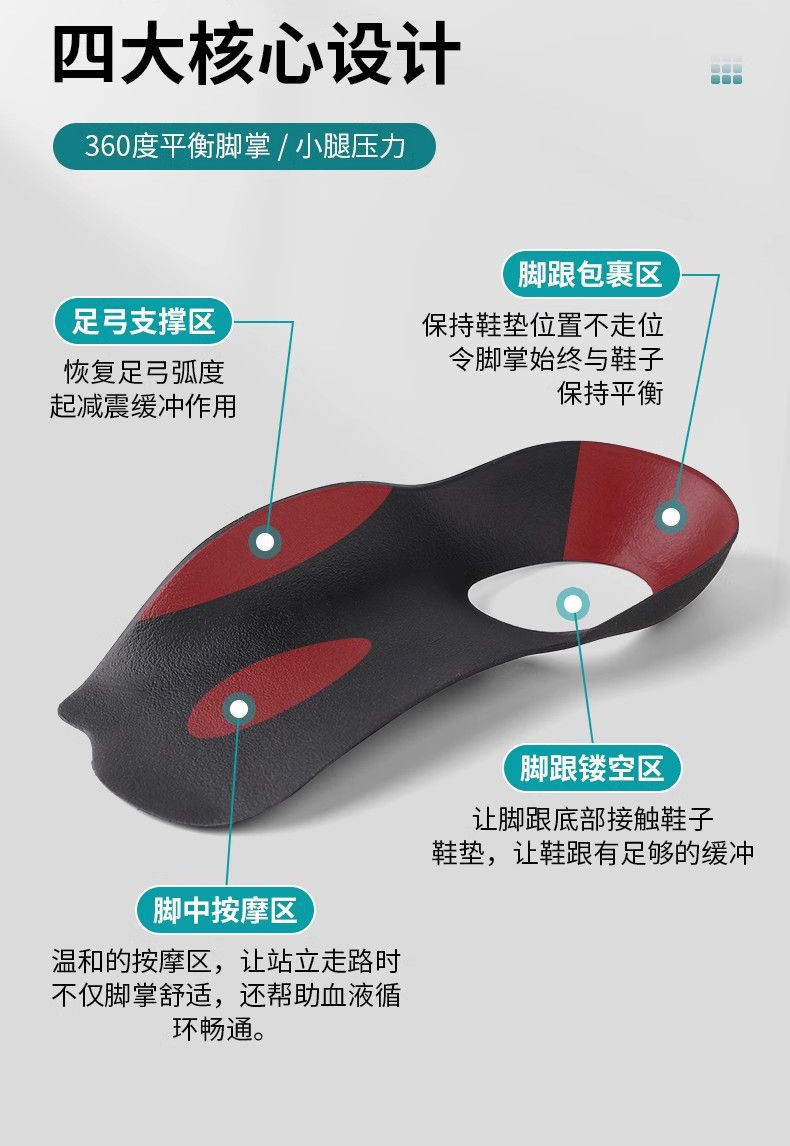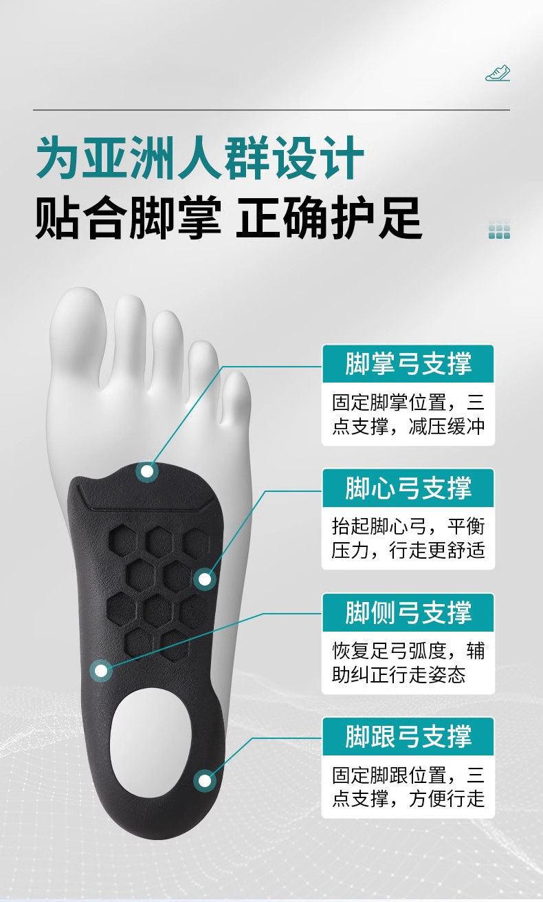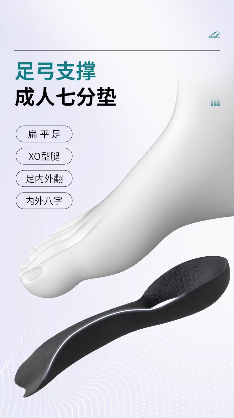 扁平足足弓支撑鞋垫XO腿形内外翻八字脚矫正防塌陷矫正半码垫批发