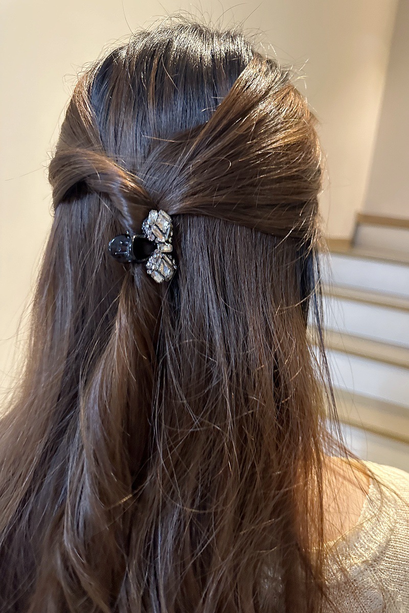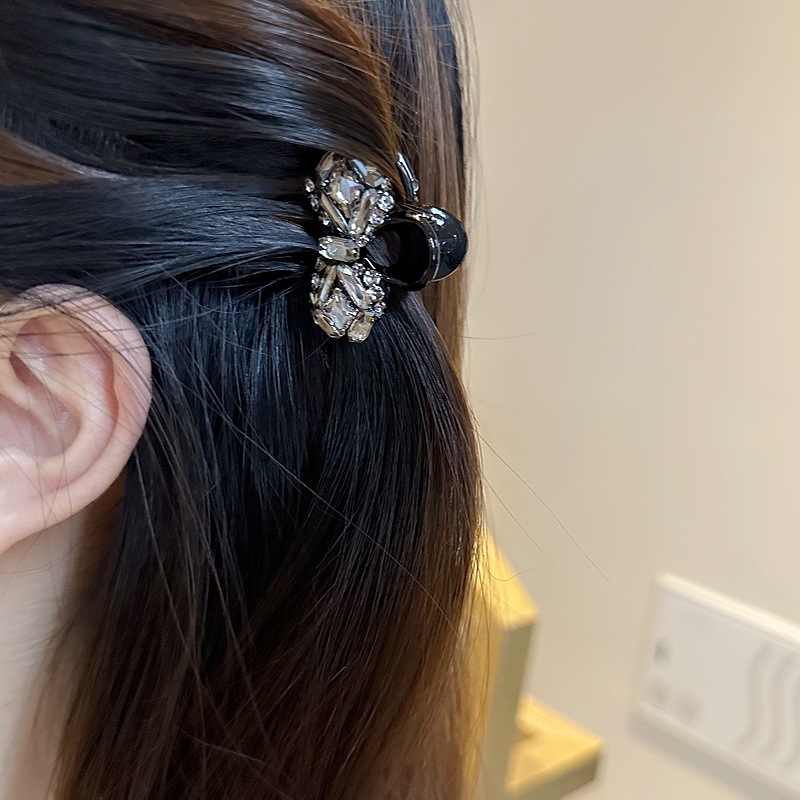韓国の髪飾り高馬尾クリップ固定神器高級感水晶蝶ネクタイ後頭部アクリル小髪グリップ