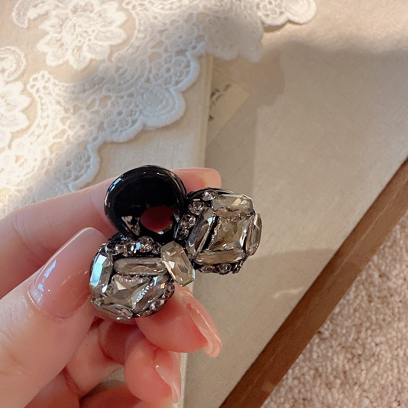 韓国の髪飾りの黒いベルベットの小さな香りの水ドリルのヘアピンの高級なレトロな気質の蝶結びのクリップの半分のクリップ