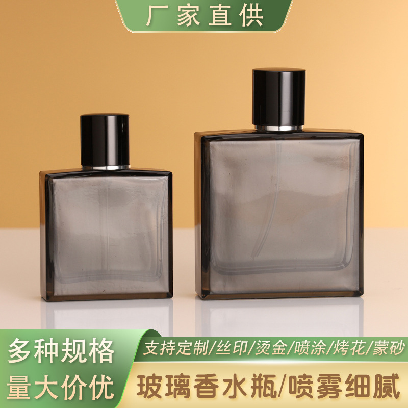 スポット卸売り香水瓶ガラス50ml 100mlフラットスクエア噴霧瓶バヨネットグレー化粧品空瓶