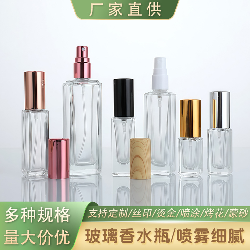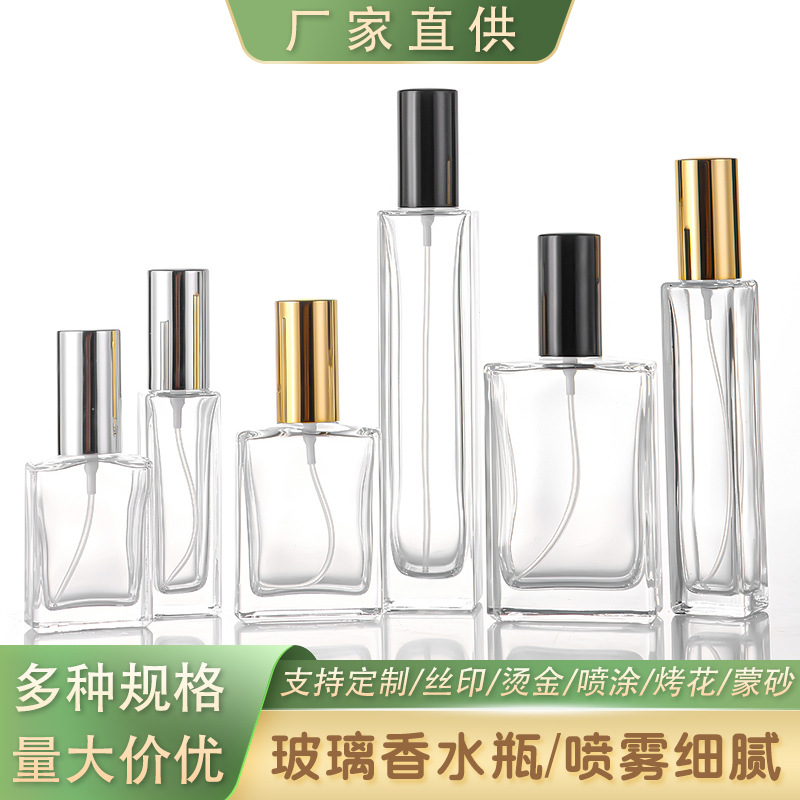 現物卸売り18ナット口ガラス香水分注瓶四角い30ml 50ml 100mlスプレー化粧品瓶