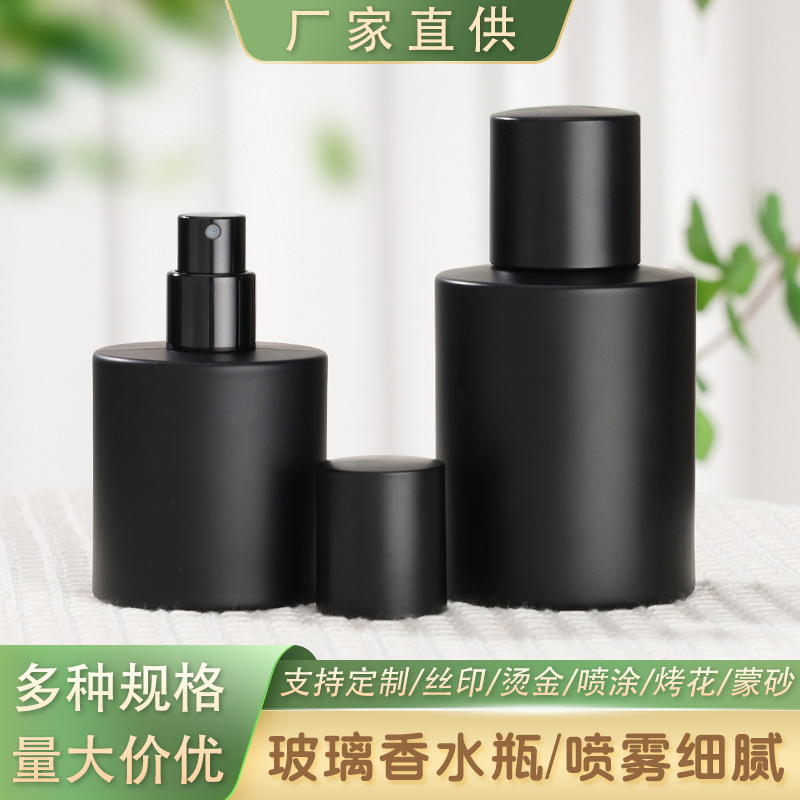 工場直売円柱ダントブラック30ml 50mlバヨネットプッシュ式スプレーガラス香水空瓶化粧品分瓶