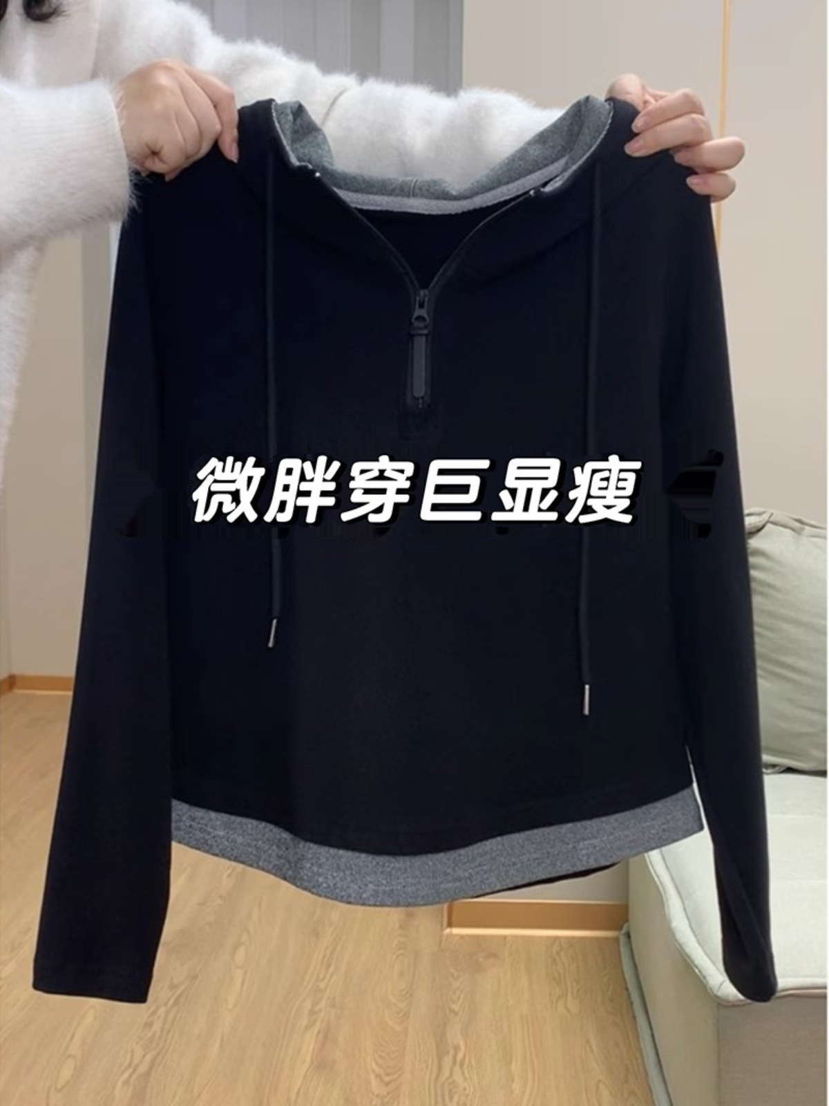 棉假两件连帽拉链长袖卫衣大码女装秋季胖设计感显瘦正肩上衣