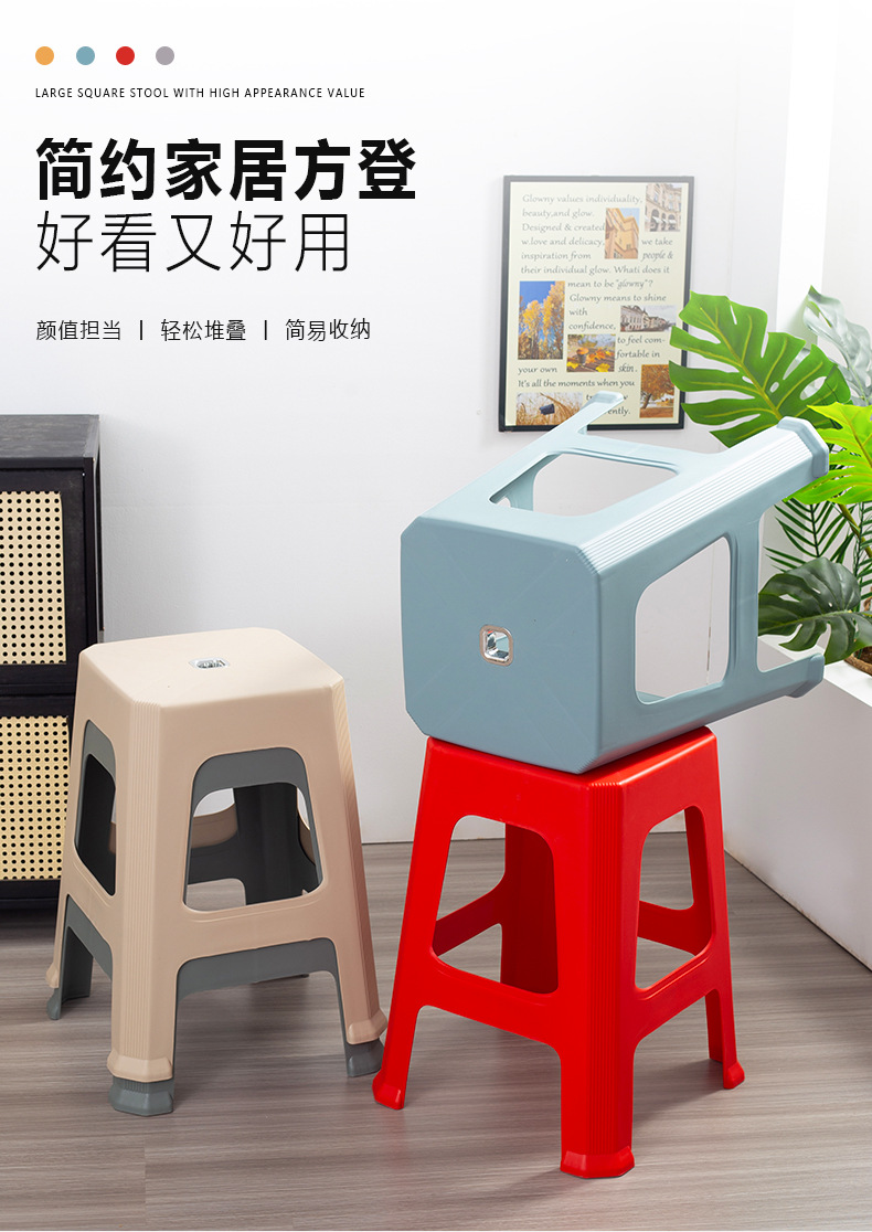 家用北欧塑料凳子加厚成人防滑塑胶高凳儿童方凳矮凳餐椅厂家批发