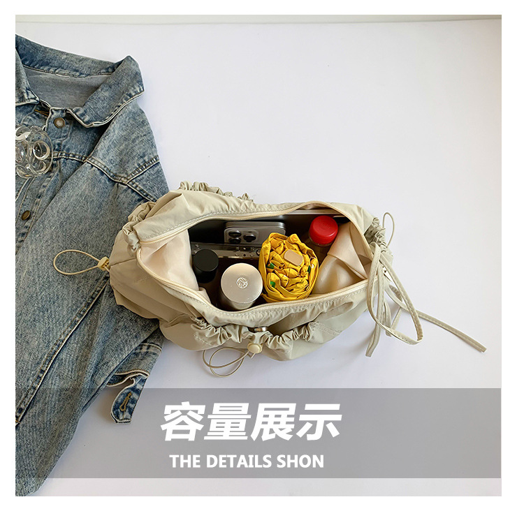 クロスボーダーの女性カバン韓国版の大衆デザイン2024ナイロンのひものしわの雲のカバンのカジュアルな組み合わせの斜め掛けのカバン