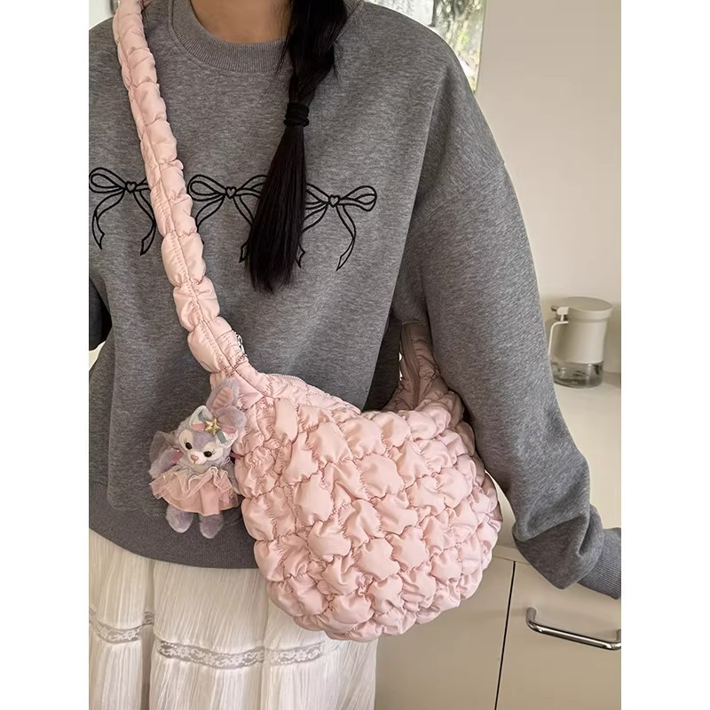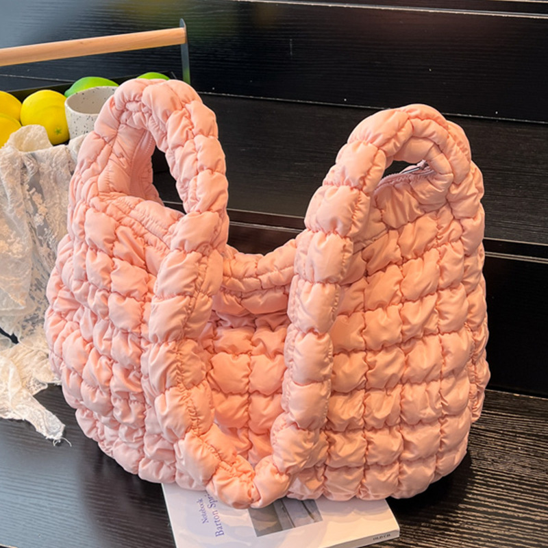 云朵包2025秋冬季新款托特棉服羽绒包大容量时尚百搭褶皱斜挎包女