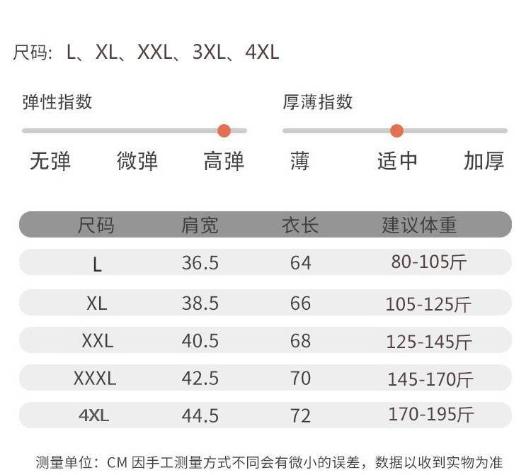 L【 40-52.5kg 】,XL【 52.5-62.5kg 】,XXL【 62.5-72.5kg 】,3XL【 72.5-85kg 】,4XL【 85-97.5kg 】