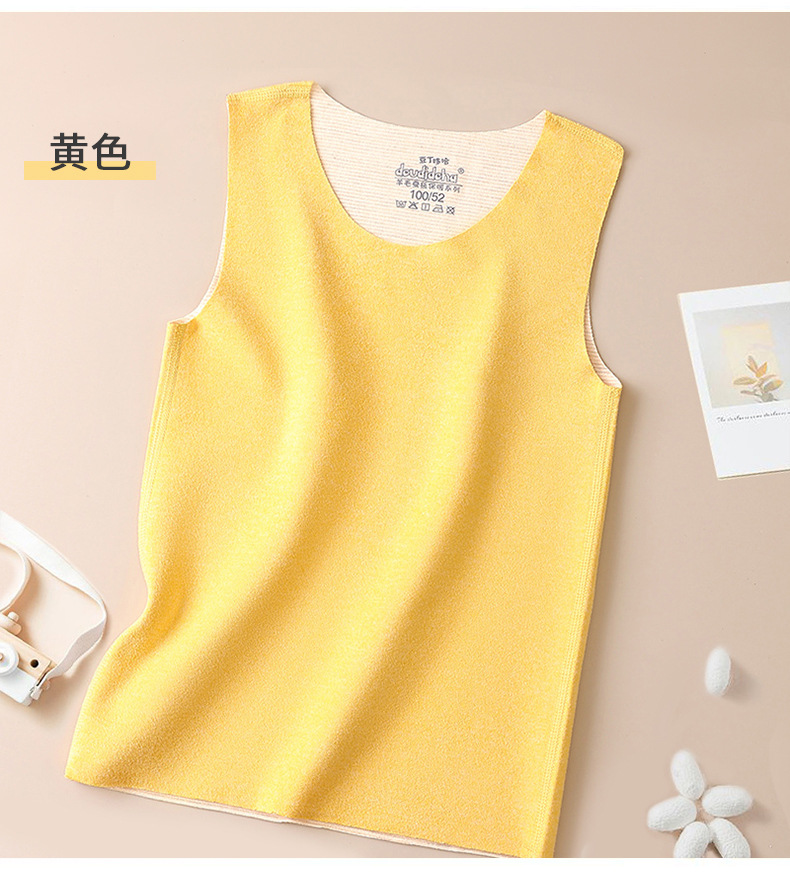 子供用保温ベスト春と秋の男の子の袖なしの底の肩の中に一枚の上着の馬甲の純色の女の子のベストを掛けます。