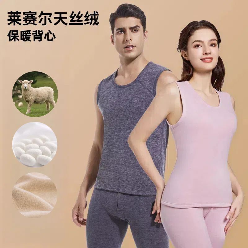 2025秋冬新款男士天丝保暖背心加绒加厚内穿打底马甲女士无袖坎肩