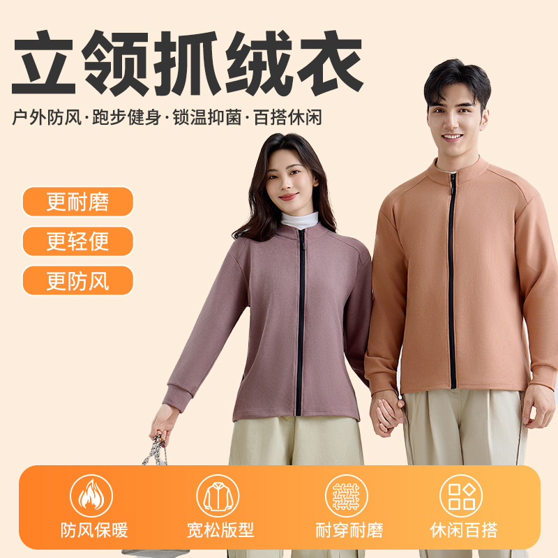 春秋季保暖抓绒衣10A抗菌休闲防风衣情侣宽松百搭夹克卫衣可批发