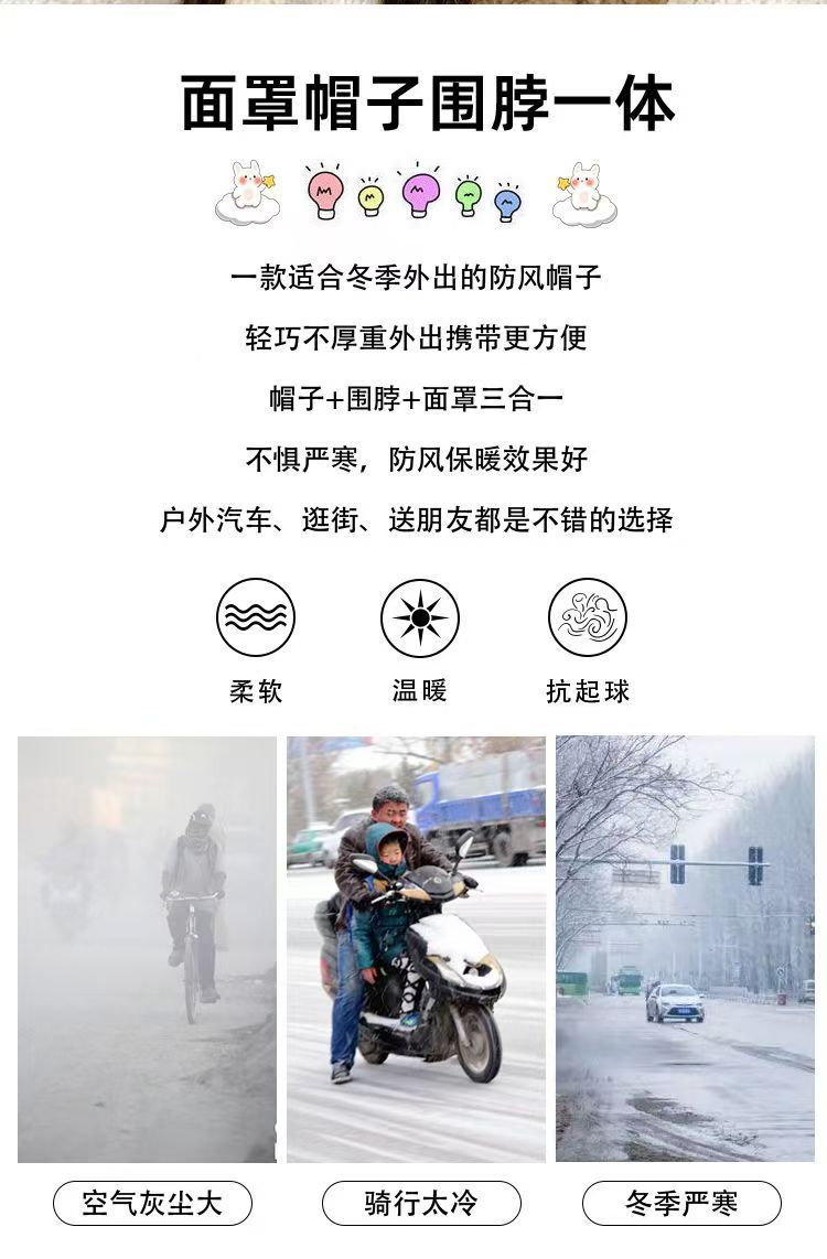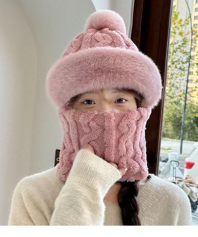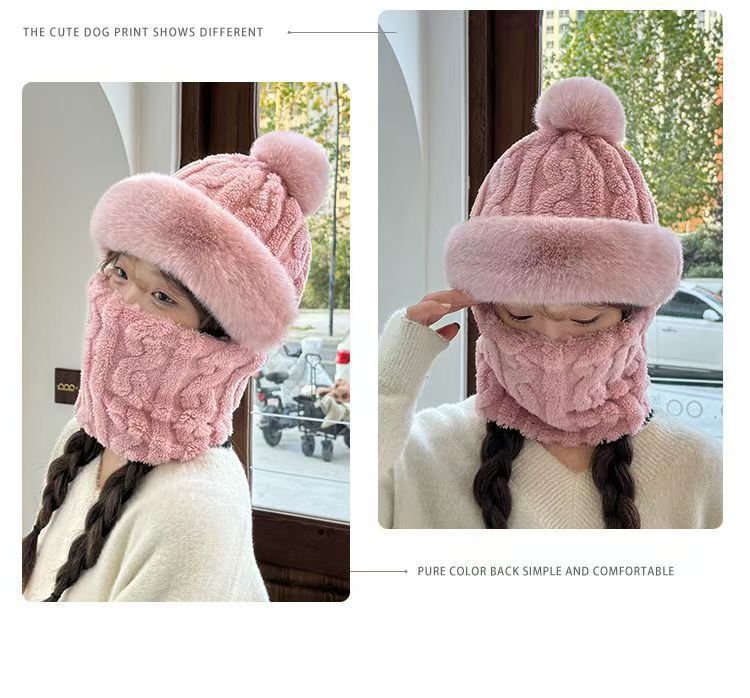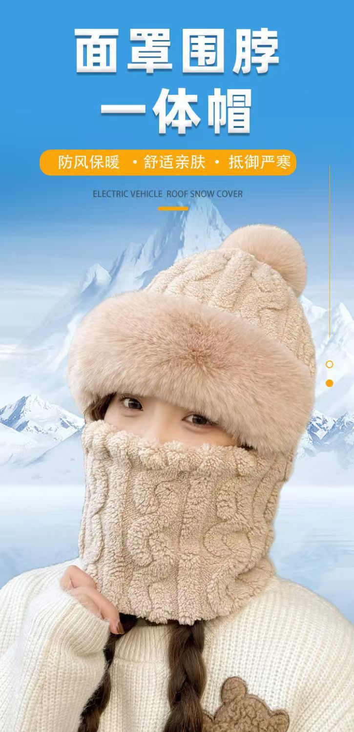帽子は首を囲んで一体になった女性冬の新型ベルベットは、自転車の防風防寒電気自動車の保温耳の冬を厚くした