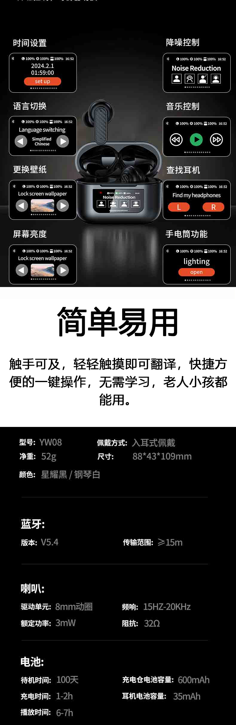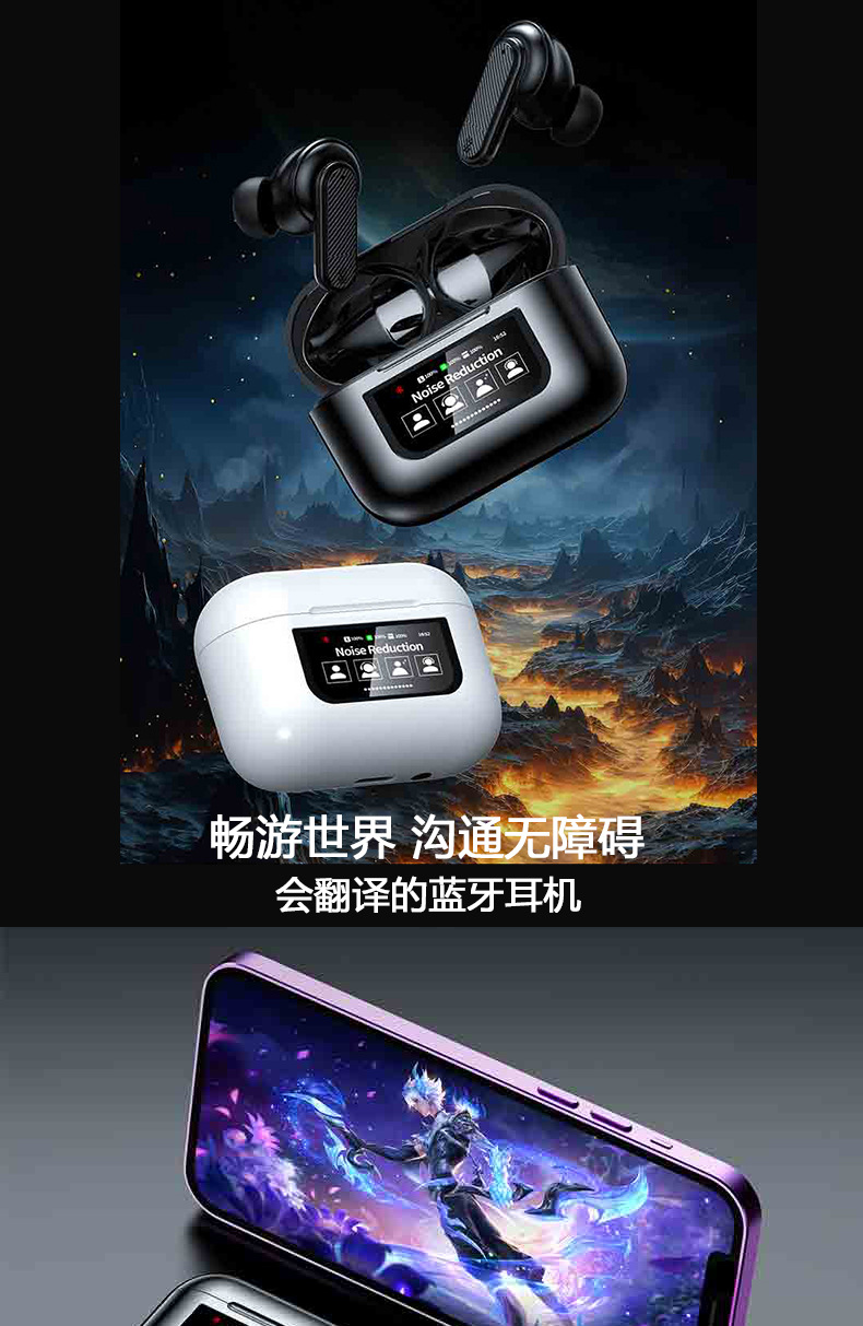 2025年新型越境スマート音声翻訳イヤホン144ヶ国語翻訳デジタルディスプレイ翻訳イヤホン