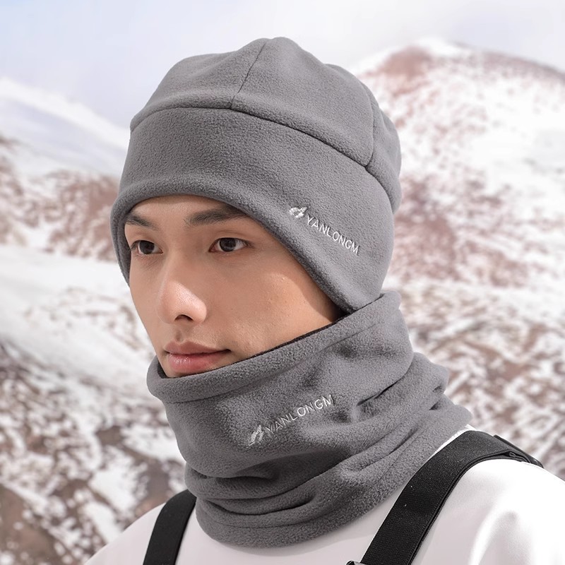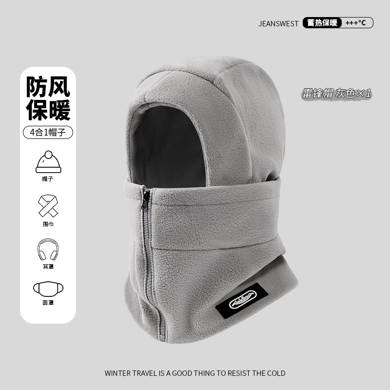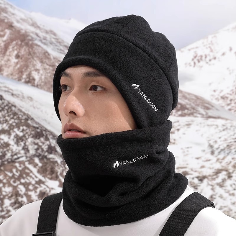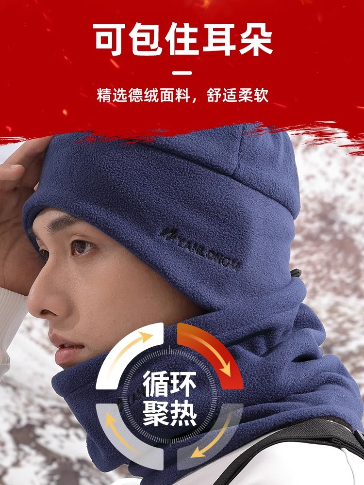 秋冬摇粒绒保暖套头帽一体面罩围脖骑行运动防风防寒滑雪帽子厂家