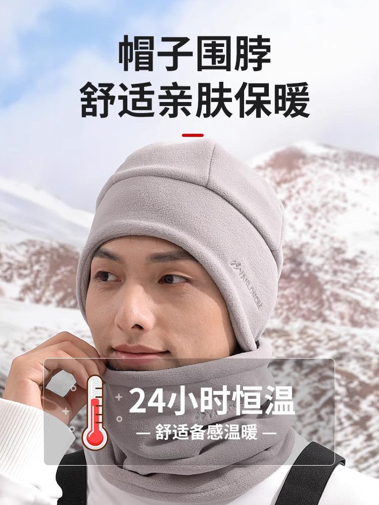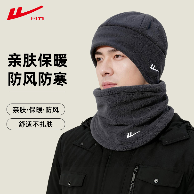 回力冬季帽子男保暖骑行防寒护颈包头护耳防风围脖加绒头套两件套