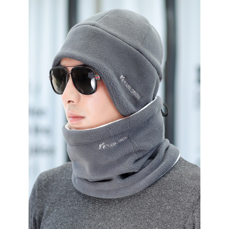 サイクリング用防寒帽子とネックウォーマーの2点セット 秋冬 男女兼用 韓国風 裏起毛 厚手 レイフェンハット 耳当て付き