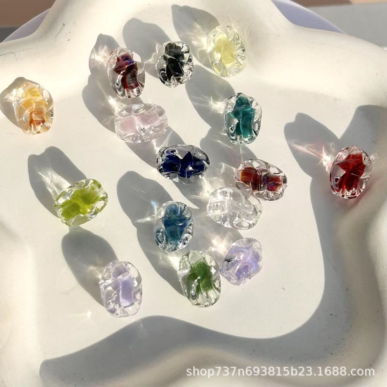 純粋な手作り瑠璃素輪指輪高級感清冷尾戒異型戒灯工ガラス多色紅書同金