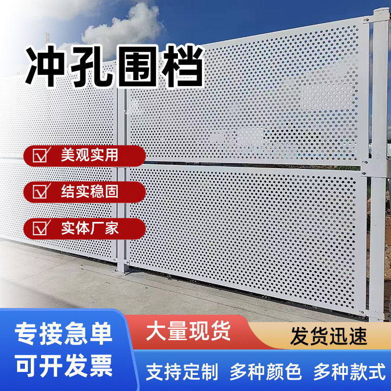 パンチングフェンス白厚さ丸穴パンチングフェンス防風フェンス市政工事二重板施工フェンス