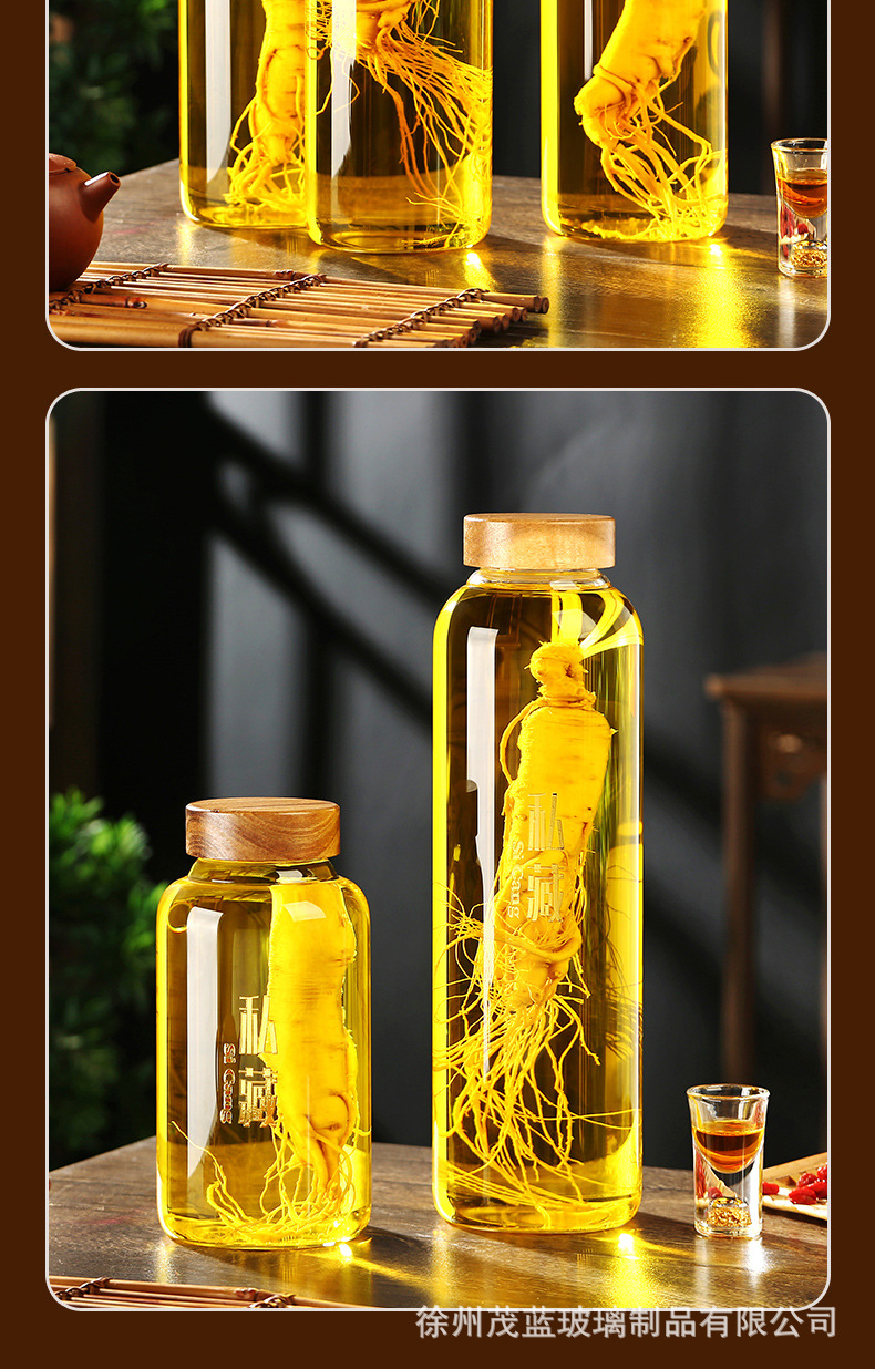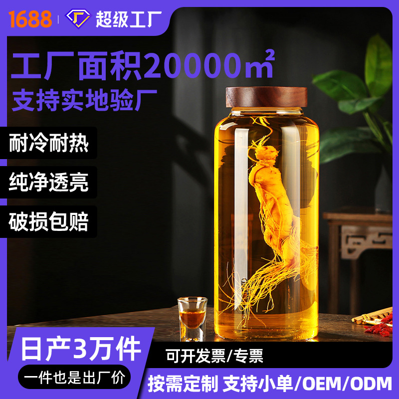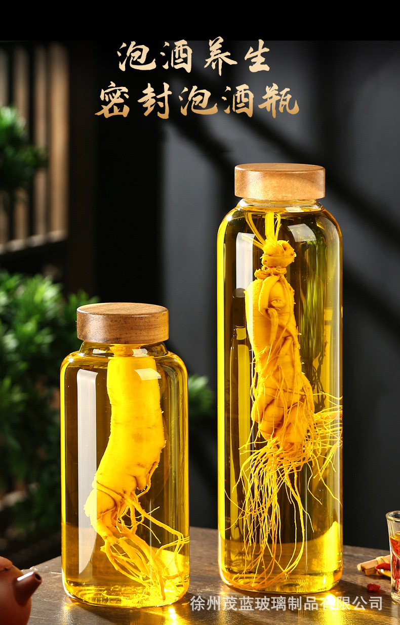 泡酒玻璃瓶家用高档密封容器人参白酒药酒罐酒坛子带木盖专用酒瓶