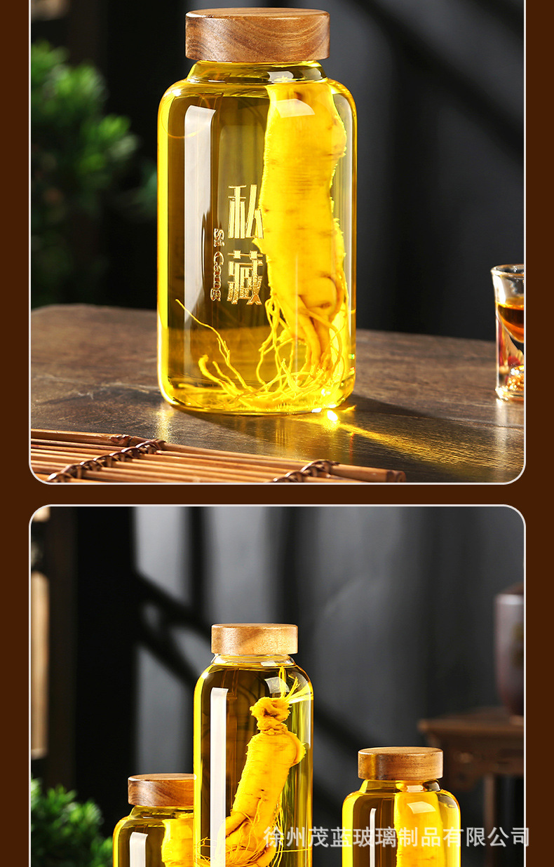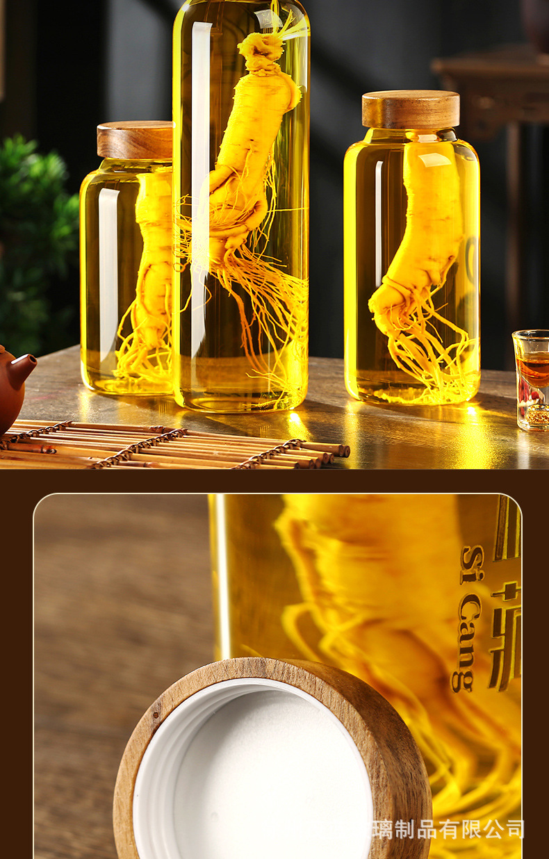 泡酒ガラス缶高ホウ素シリコン材質アカシア木蓋密封人参薬酒青梅酒専用