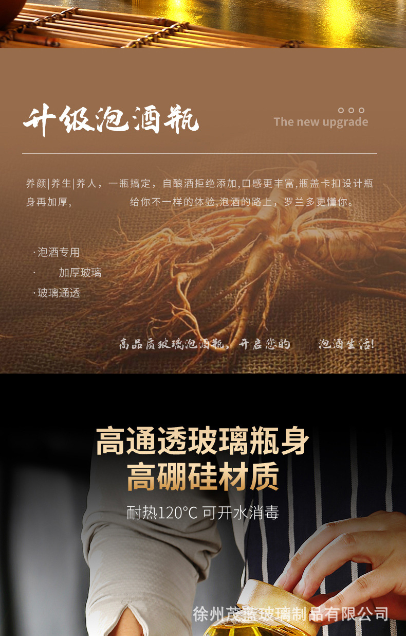 密封玻璃泡酒瓶人参枸杞自酿专用酒坛中药白酒分装瓶高硼硅带盖