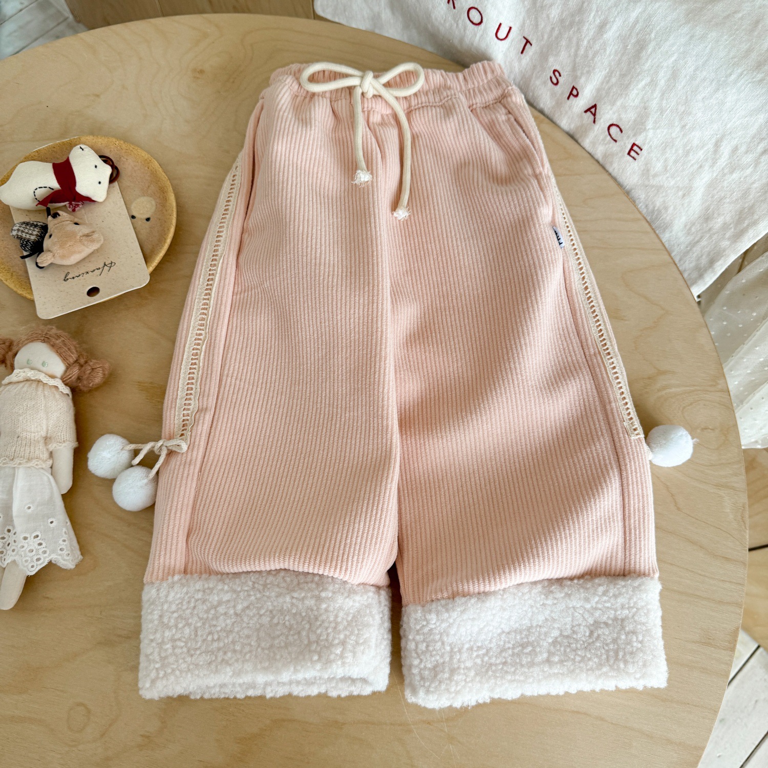 现货秒发~~女童加绒休闲裤秋冬季羊羔绒拼接女宝宝加绒灯芯绒长裤