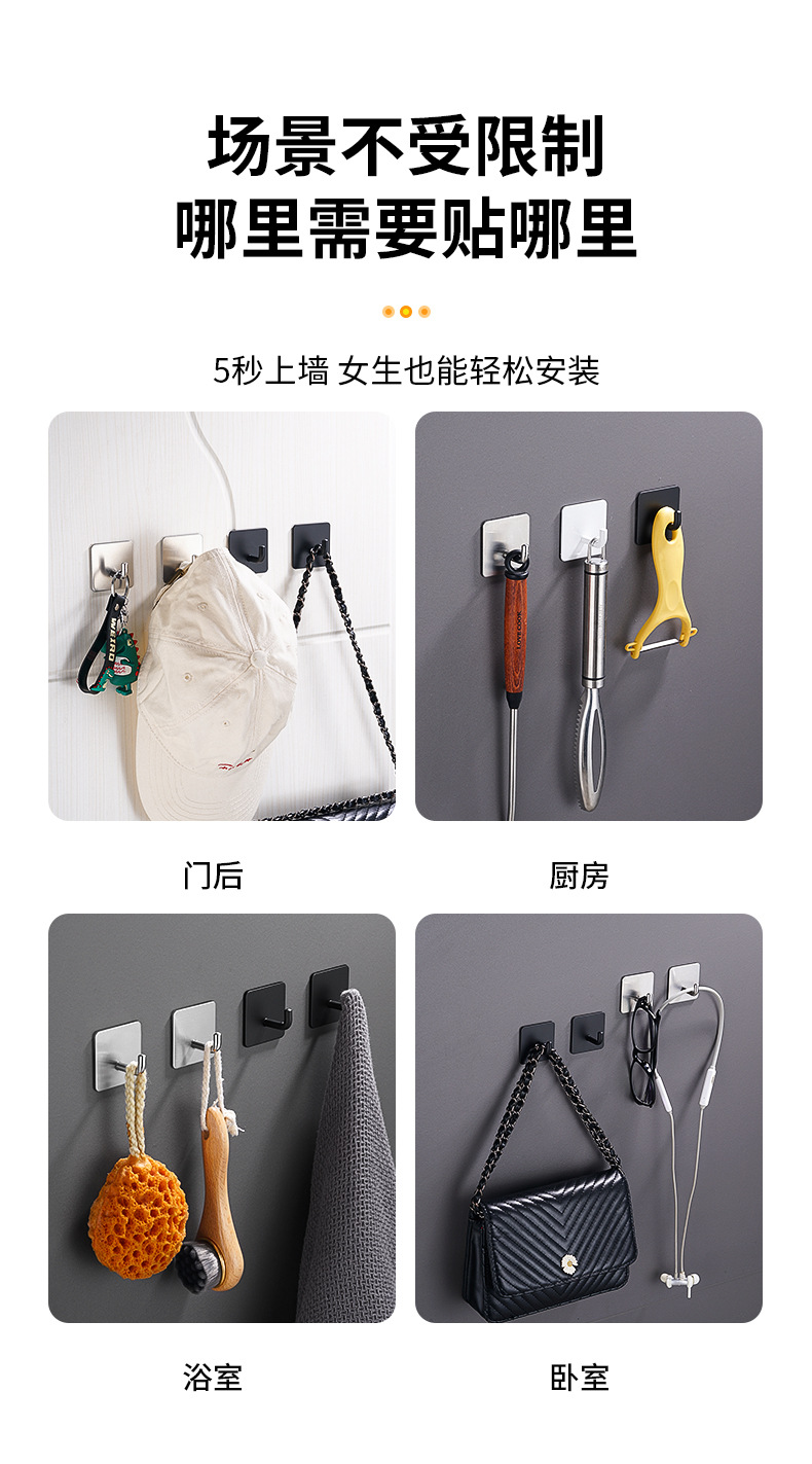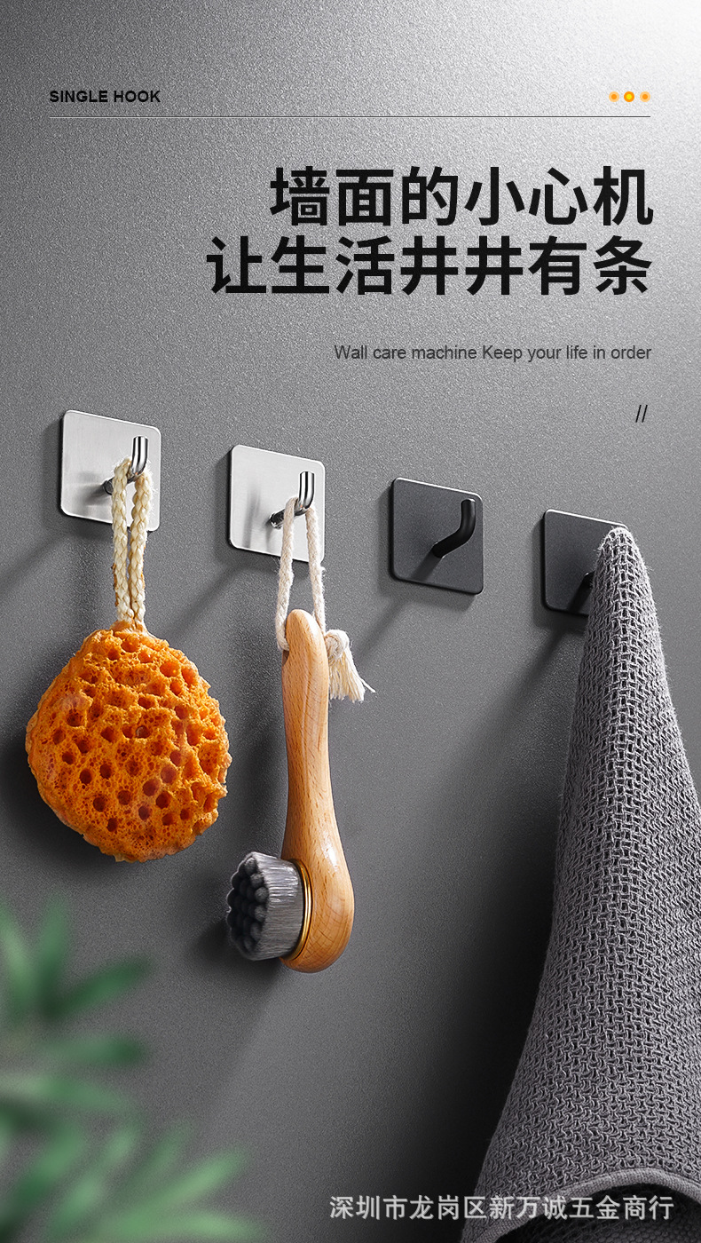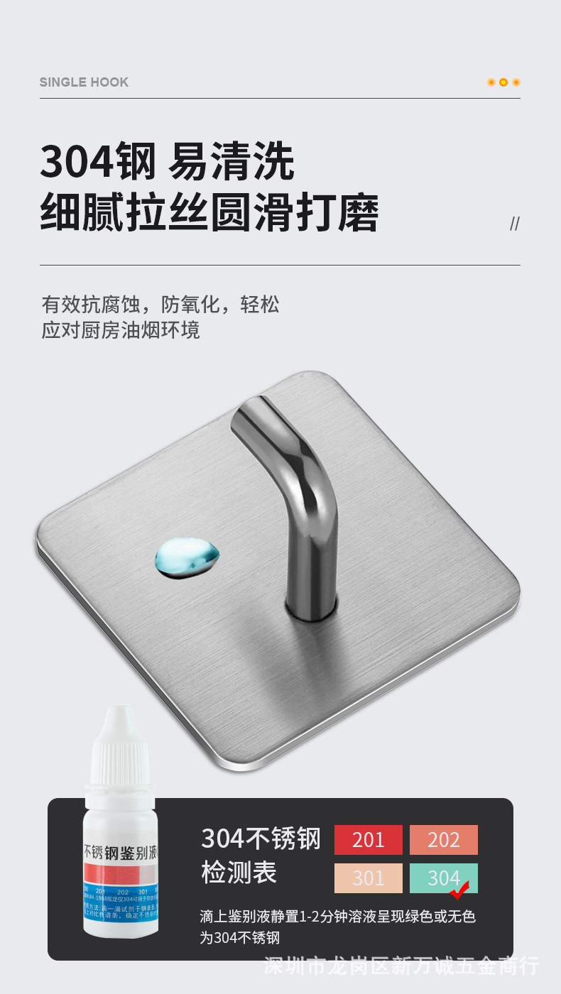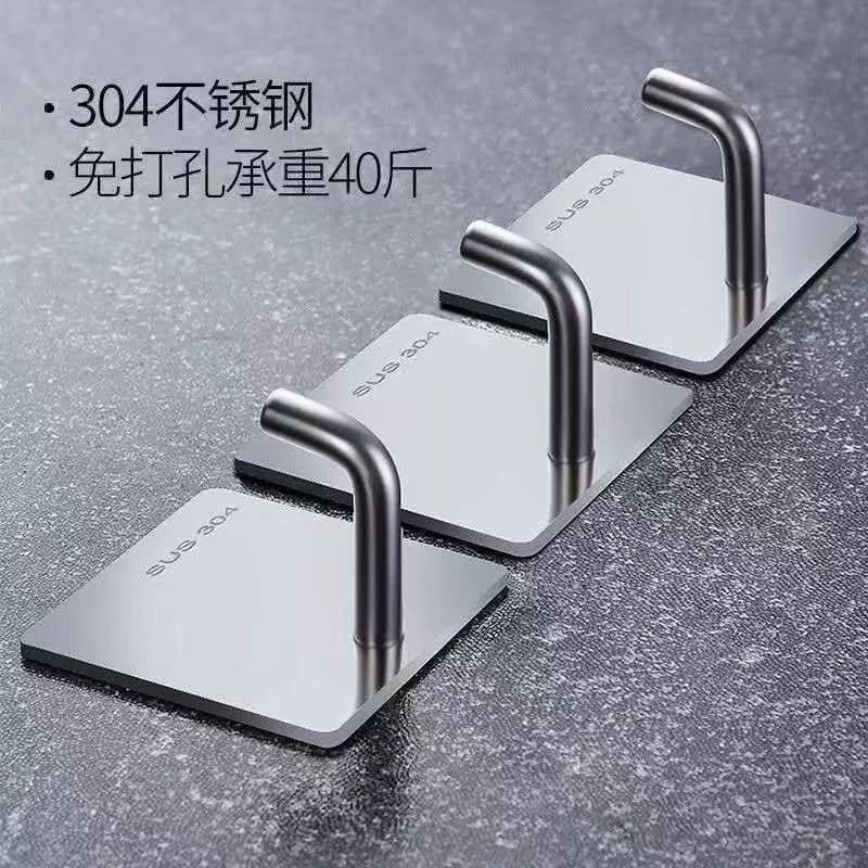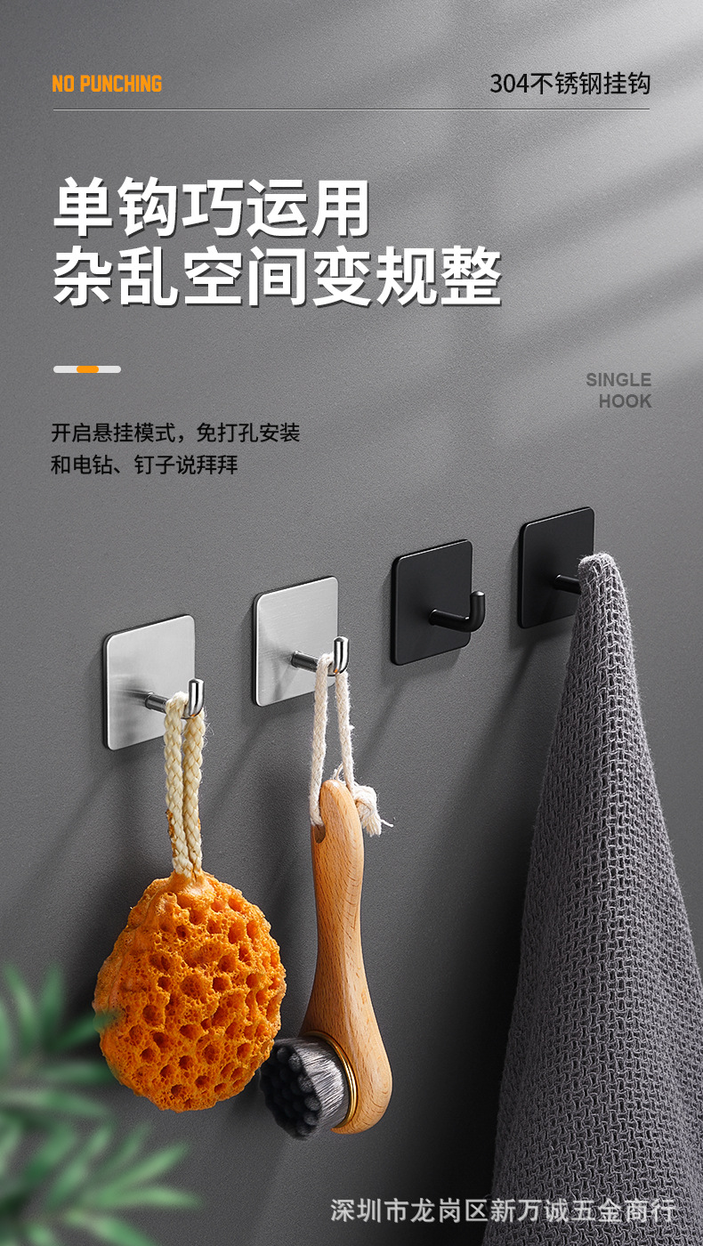 不锈钢挂钩304加厚粘胶强力承重免打孔卫生间厨房宿舍毛巾无痕贴
