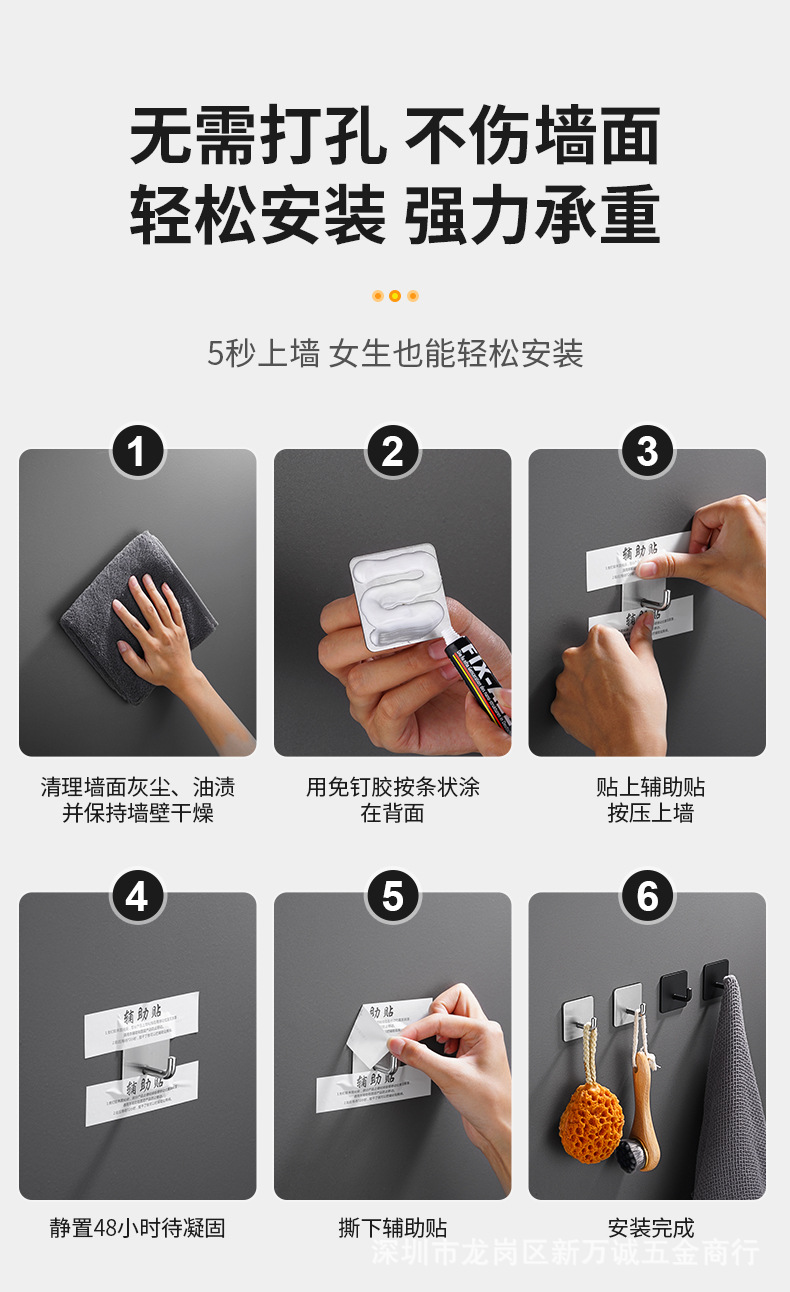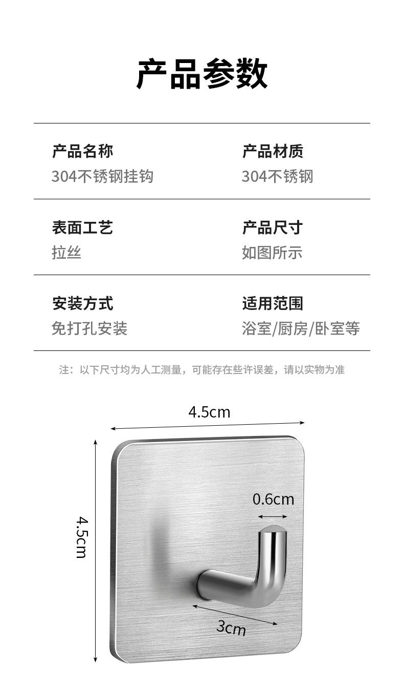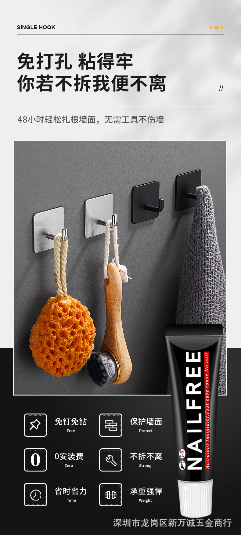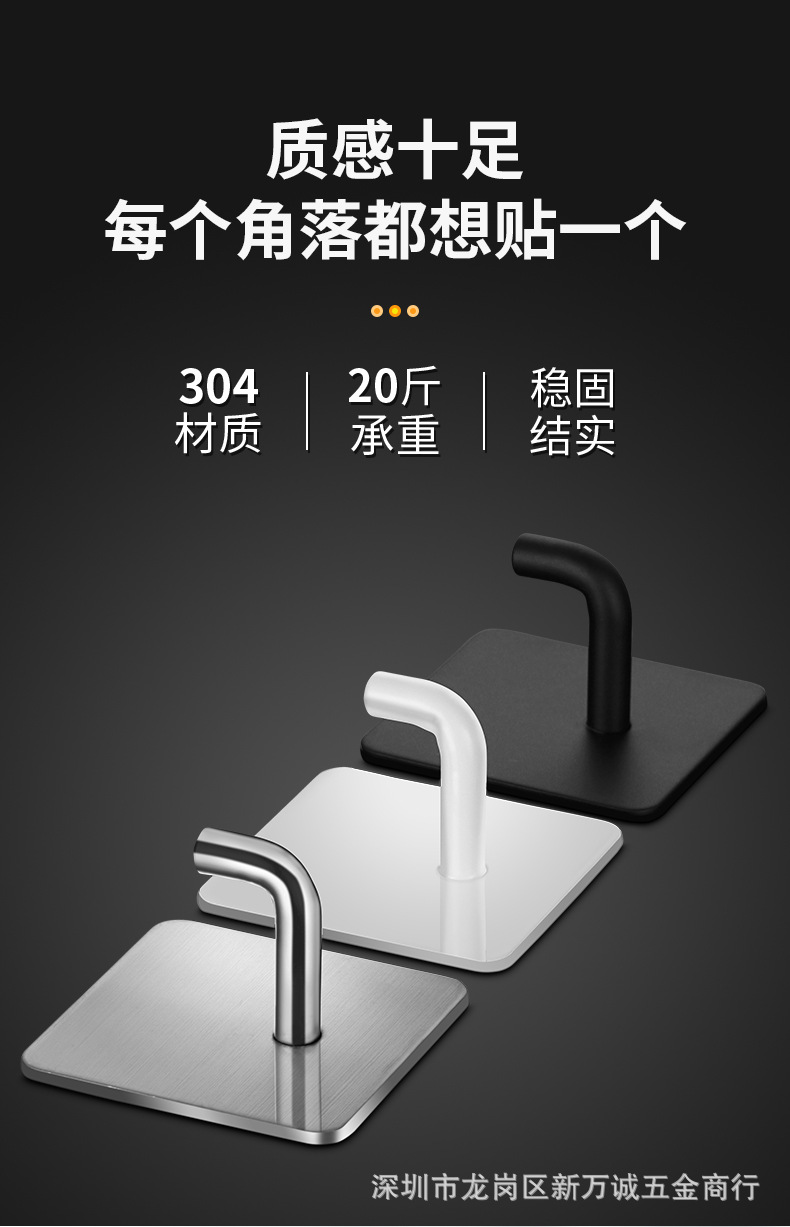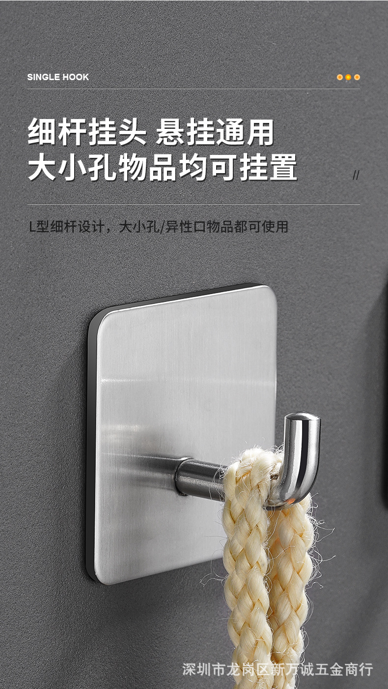 不锈钢挂钩304加厚粘胶强力承重免打孔卫生间厨房宿舍毛巾无痕贴