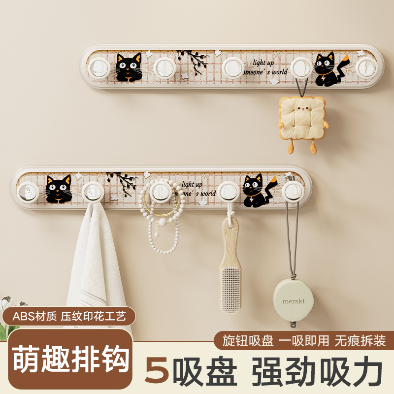卡通猫吸盘旋转挂钩免打孔卫生间浴室宿舍入户门强力承重无痕粘钩