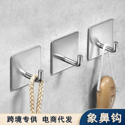 跨境201不锈钢挂钩强力粘钩门后衣钩五金挂衣钩免打孔金属衣帽钩