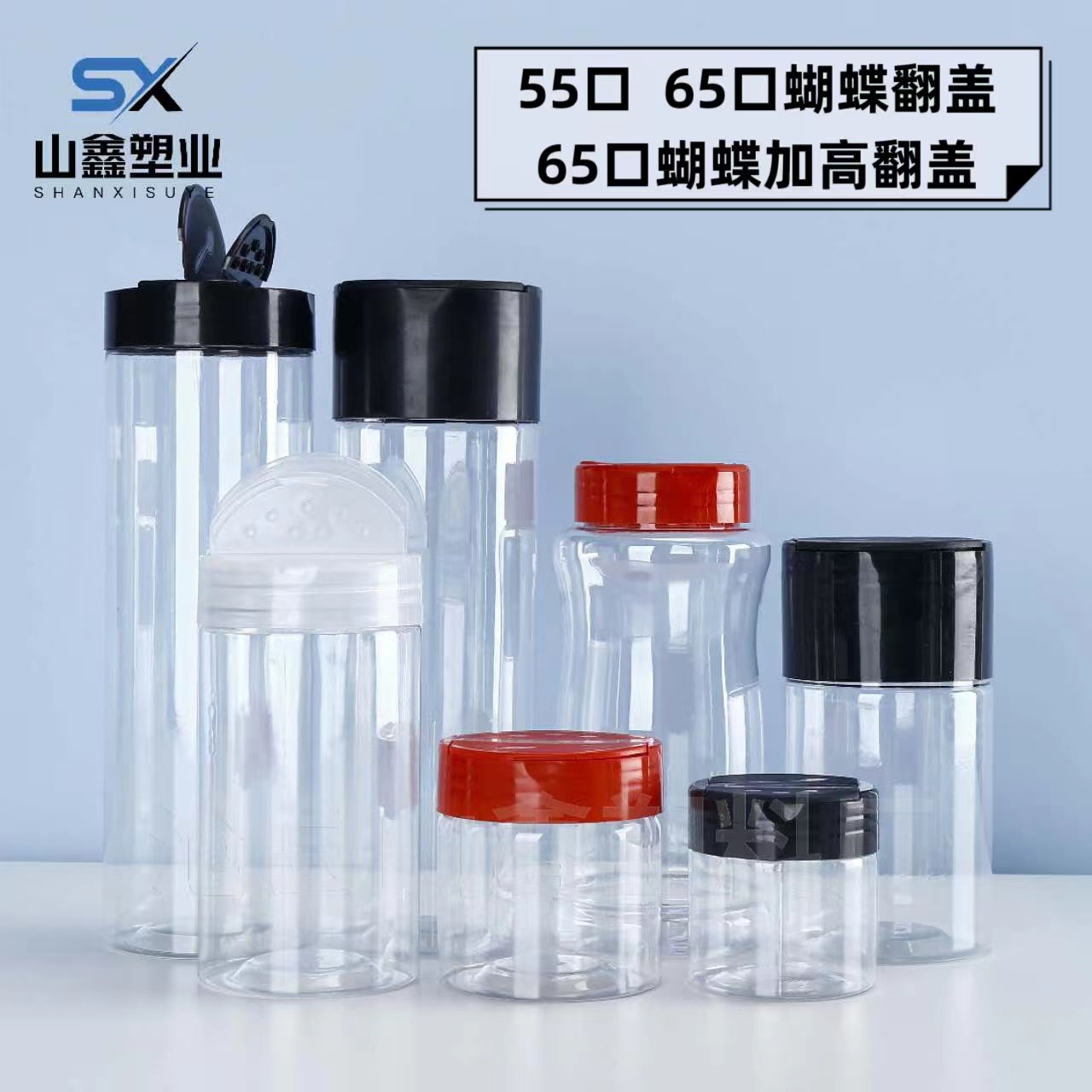 Pet 65口透明プラスチック調味料缶蝶蓋調味料瓶プラスチック香料缶密封調味料缶散布瓶