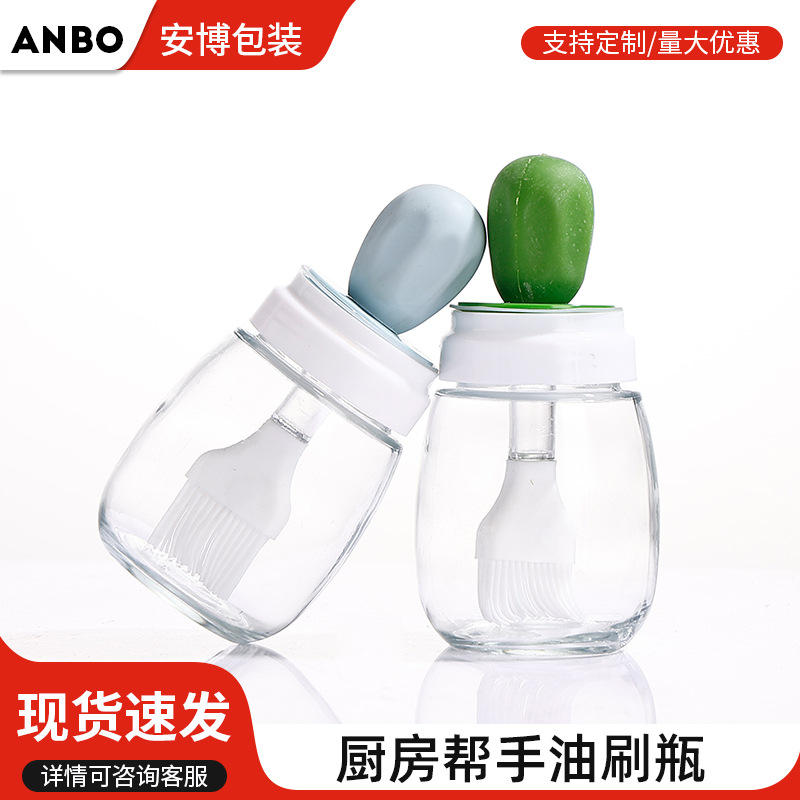 メーカー卸売シリコーンオイルブラシボトルオイルポットベーキングブラシキッチン家庭用ベーキングシリコーンバーベキューオイルブラシガラスオイルポット